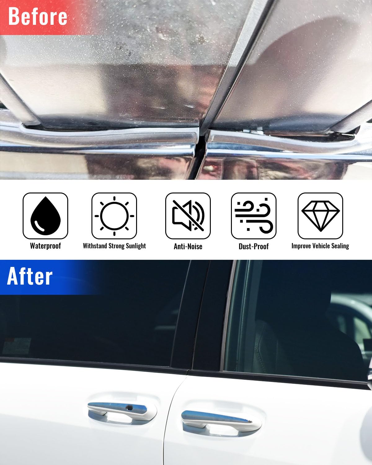 Premium Material: The Weather Strip Is Made Of Premium Abs Plastic Material, Which Is Wear-Resistant, Cold Resistant, High-Strength, Has A Longer Service Life, And Has Good Sealing Performance, It Can Effectively Prevent Water Or Dust From Entering The Interior Of The Car, Keeping Clean