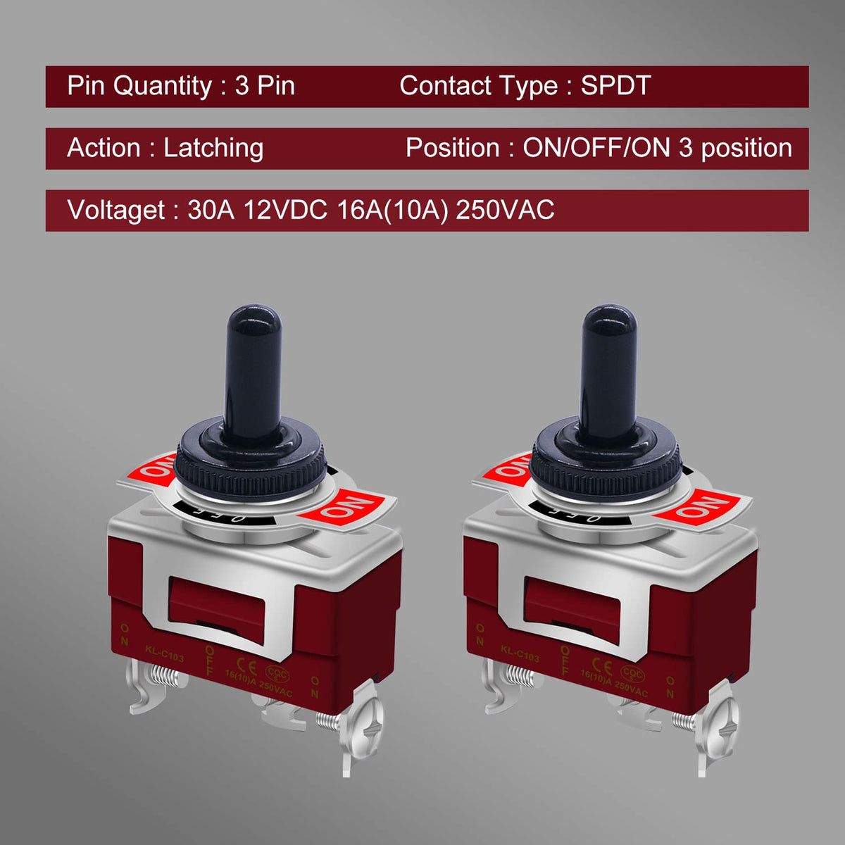 Weideer 2Pcs Toggle Switch 12V 30A On/Off/On 3 Pin 3 Position Spdt Waterproof Switch With Waterproof Cap Terminals For Auto Car