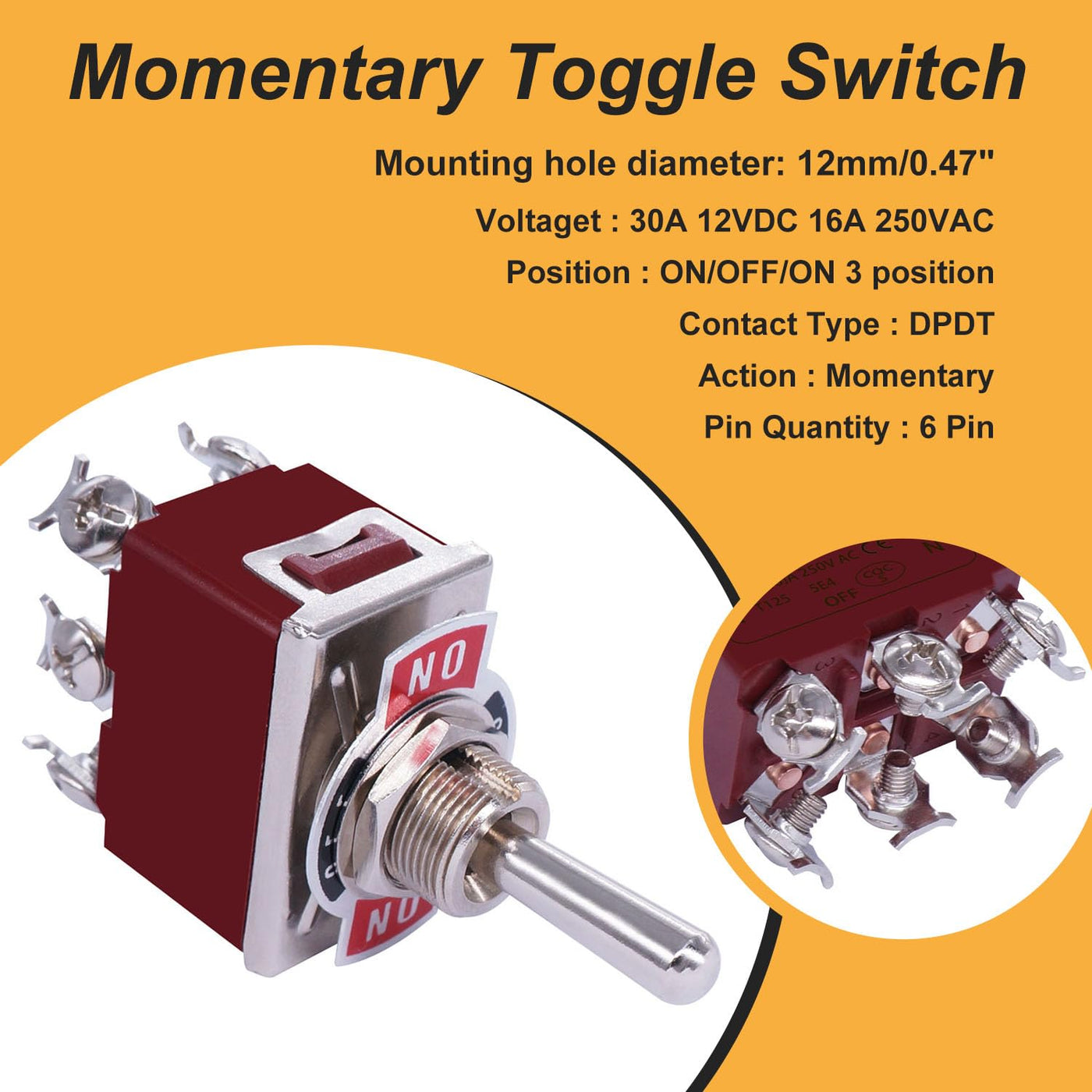 Weideer 4Pcs Waterproof Momentary Toggle Switch 12V 30A (On)-Off-(On) 6 Pin Dpdt Heavy Duty Marine Switch With Waterproof Cap Fo