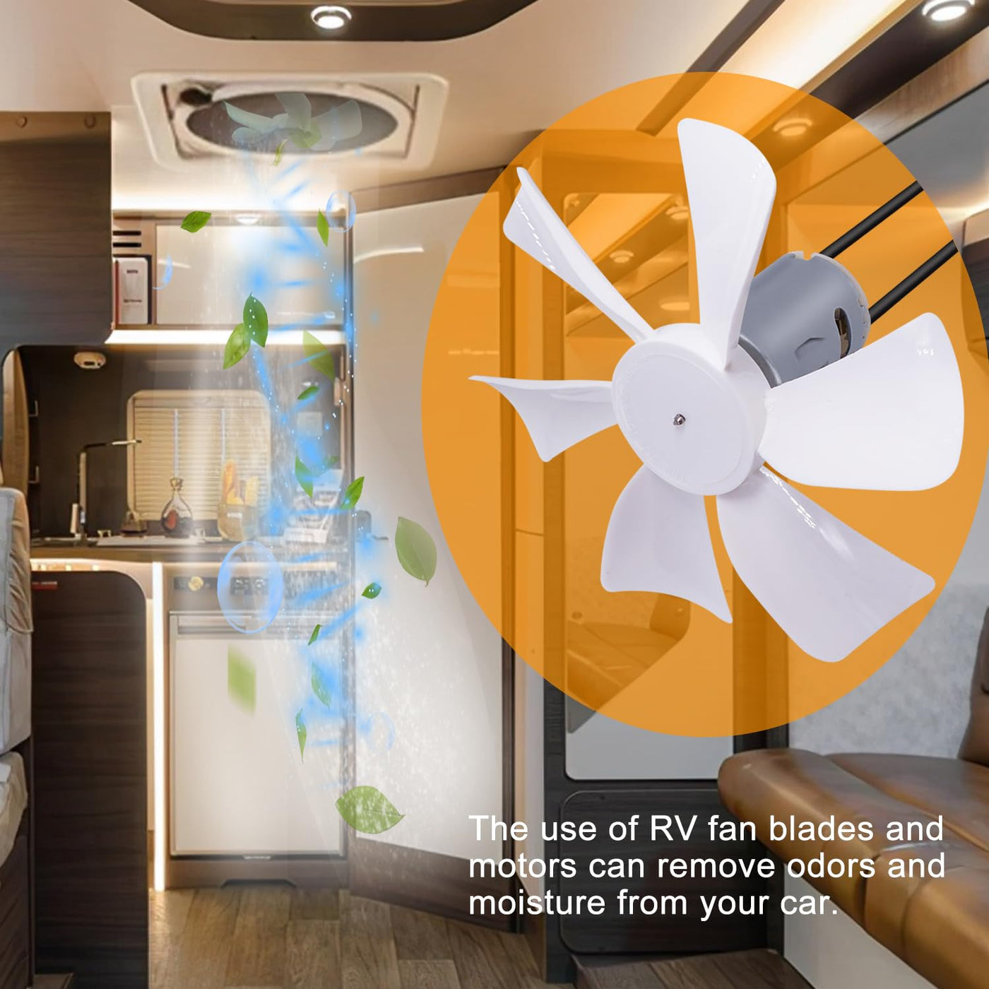 Weideer 6 Inch Rv Vent Fan Blade With 12V Rv Vent Motor D-Shaft Replacement Rv Bathroom Vent Fan Motor With 2 Screws 2 Zip Ties