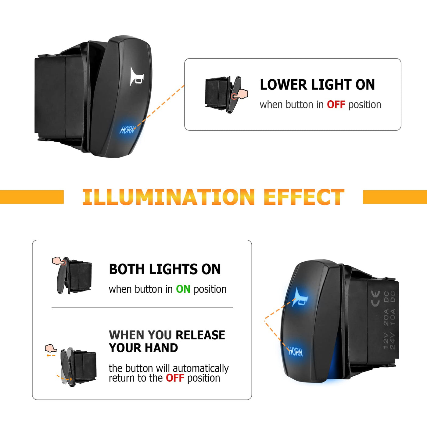 Specification: ?Function?Loud Horn Can Let Others Know You Are There And Help To Avoid A Crash. ?Material?Made Of Quality Metal And Plastic To Achieve Better Durability And Longer Lifespan. ?Performance?105Db, Operates On Standard 12V Dc. ?Sold As A Whole Set?Includes Horns, Rocker Switches, And Long Enough Wiring Harnesses, No Need To Buy Them Separately. ?Installation?Plug & Play Design. Provide Wiring Clips For Easy Installation.