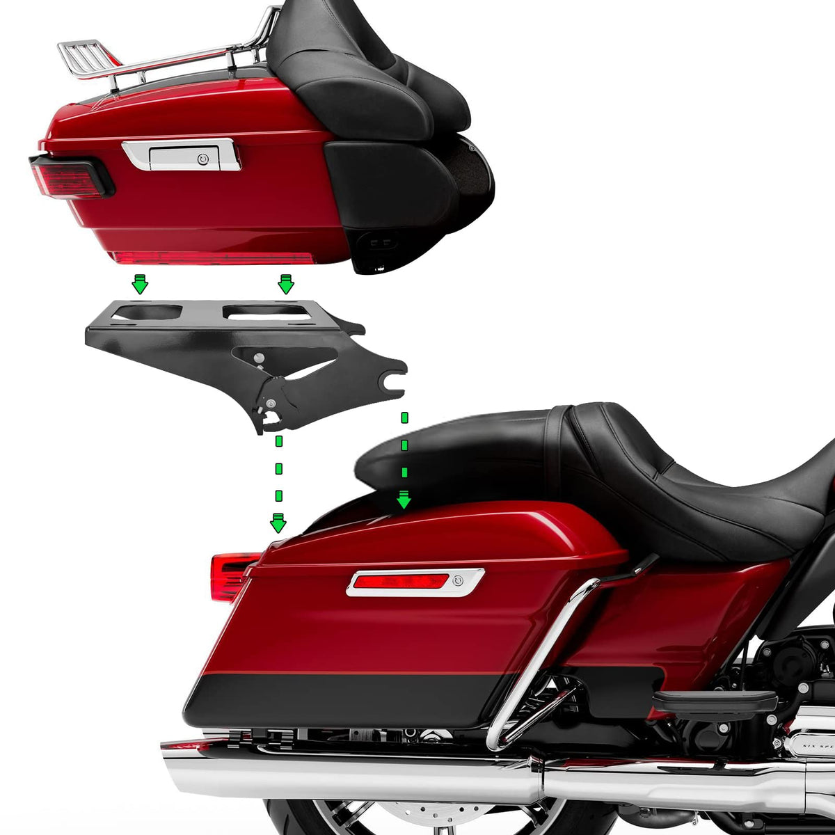 Weisen Detachable Tour Pack Luggage Rack Two-Up Tour Pack Pak Mount Quick-Detach Compatible With Harley Touring Road King Electra Glide Road Glide Street Glide 2014-2024 Black