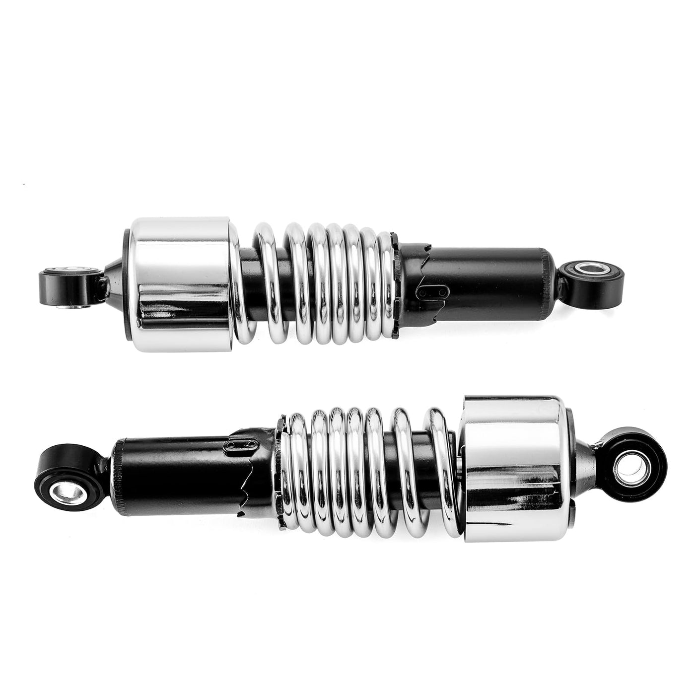 Q: What is the length of the WeiSen rear shocks?A: The WeiSen rear shocks have an eye-to-eye length of 10.5 inches, which provides a lower riding position compared to stock shocks, giving your motorcycle a more aggressive stance.