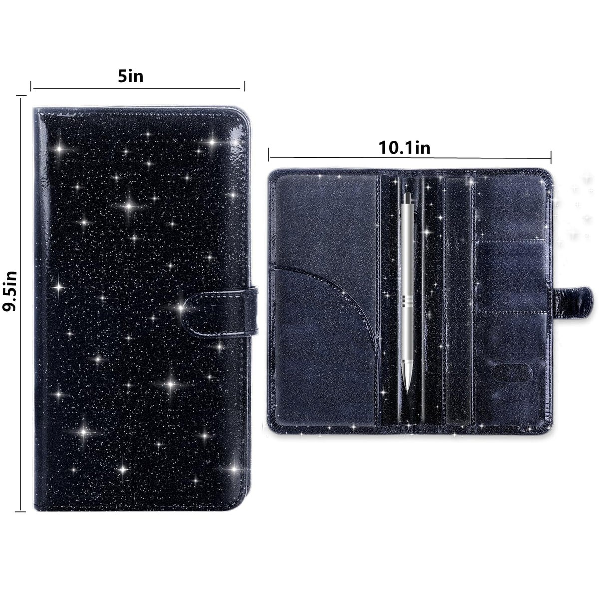 A must for car owners 1;Our briefcase is a must-have for any car enthusiast. 2;We offer car file managers in a variety of colors so you can design the perfect stand to match your personality and style! 3;This car registration rack for glove box is made of high quality and friendly PU leather. 4;The car glove box organizer has a clear window so you can easily see all your files when you open it! Clever design 1;This car glove box organizer is a great way to organize all your important documents. 2;The card holder has one large pocket for your car insurance card, two pockets for your vehicle registration card, and three small pockets for your driver's license or other valuable cards. 3;This trailer registration rack is designed for drivers who need accessories that fit all their required documents. 4;Our compartment organizers are just the right size for your car. Measuring 5'' x 9.5'', when opened, it measures 10'' x 9.5'' and fits easily in one hand!