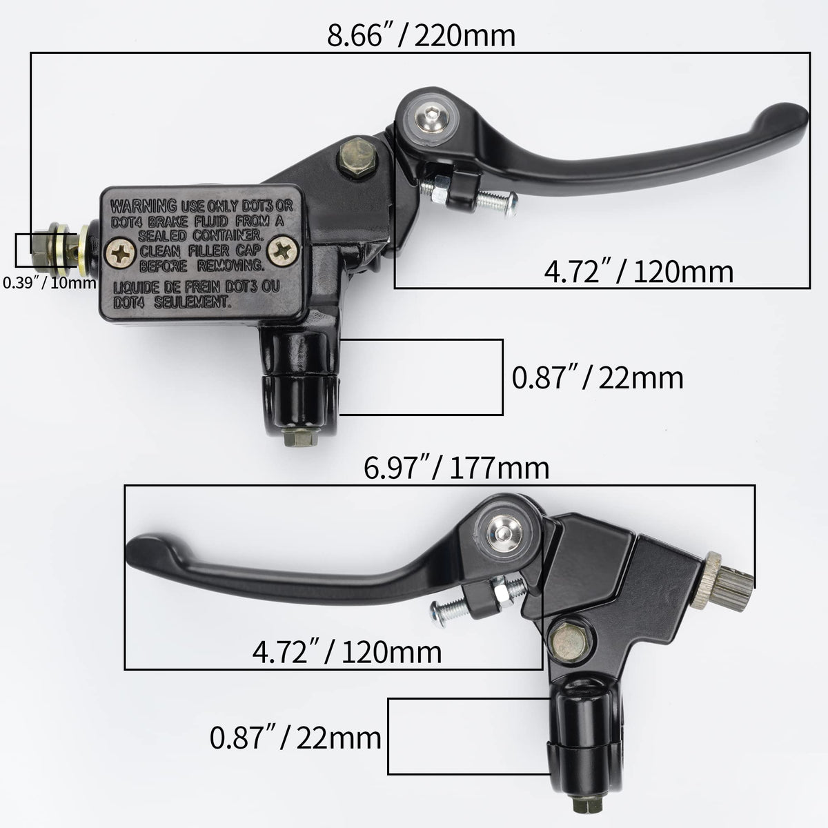 Measurements: Lever Lenth: 5.15' (In Millimetre Is 131Mm) Bar Mounting Hole: 7/8' (In Millimetre Is 22Mm), Can Also Fit Dirtbikes With 28-22Mm Fat Bar. Master Cylinder Reservoir Size: 2.12'(Length) X 1.45' (Width) X 1.69'(Hight) Please Look At Picture For More Detail Measurements.