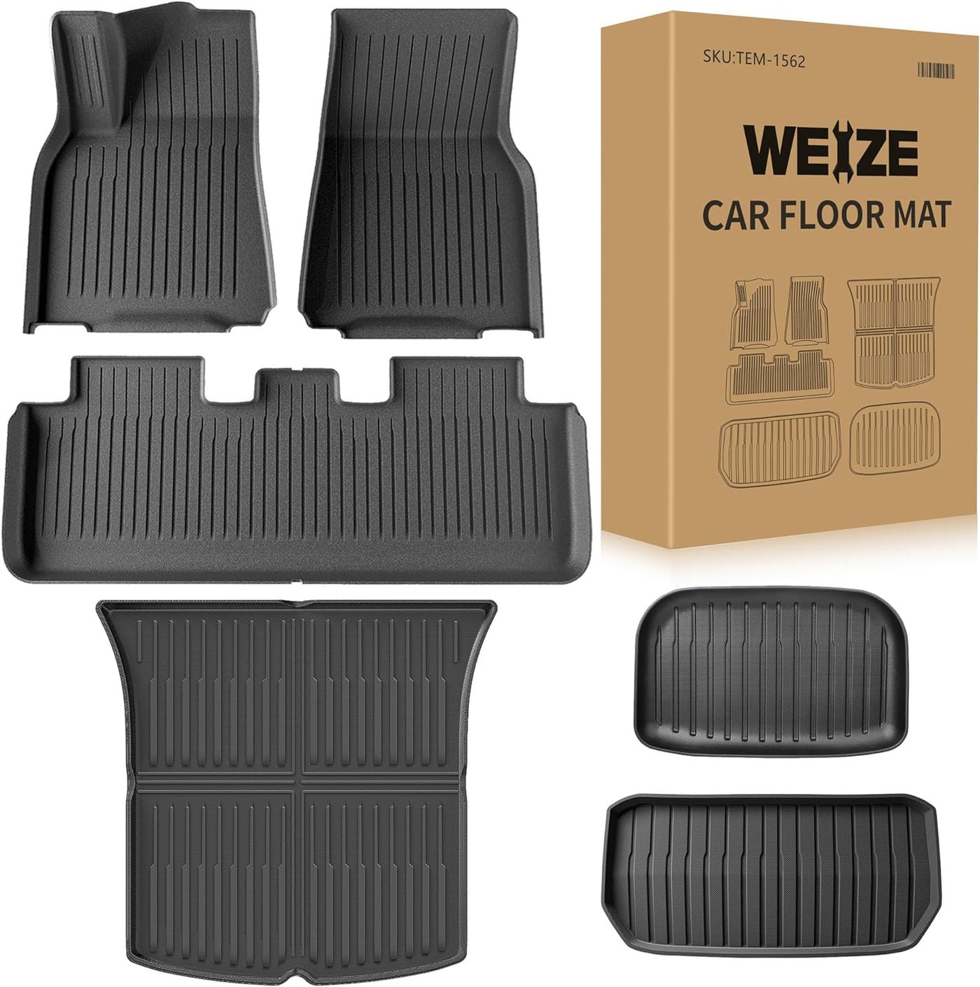Weize Floor Mats & Cargo Liners Set Fits Tesla Model Y 2021-2023 2024, All Weather Tpe Waterproof Anti-Slip Cargo Liner Floor Mats, Custom Fits Tesla Full Set (5-Seater, Set Of 6 Mats)