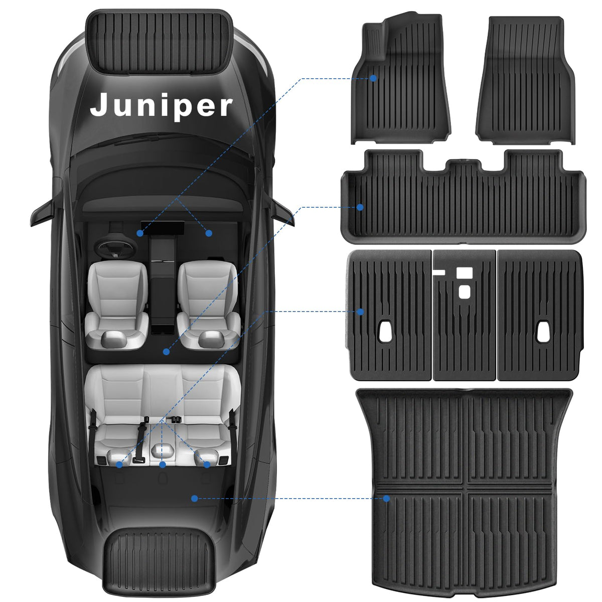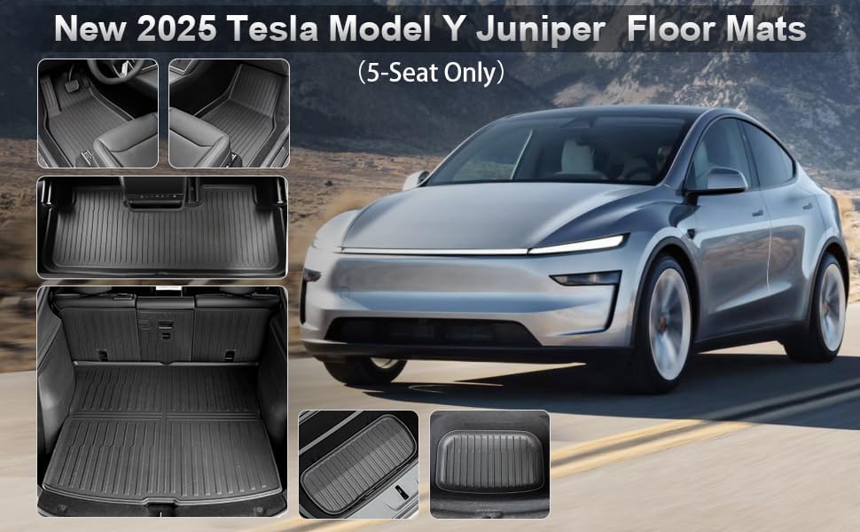 Weize Floor Mats for Tesla Model Y Juniper 2025 2026 5-Seat, All Weather Non-Slip Front Rear Cargo Liner Second Row Seat Back Ma