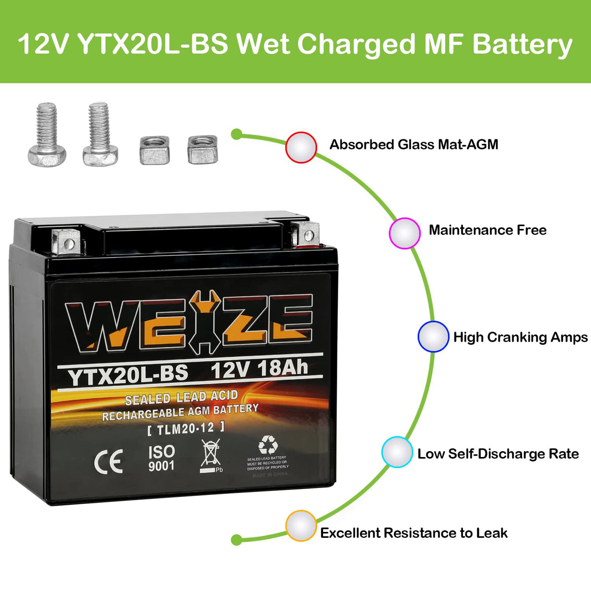 Weize Ytx20L-Bs High Performance Power Sports- Maintenance Free - Sealed Agm Battery Etx20L Bs For Motorcycle Atv Utv Snowmobile