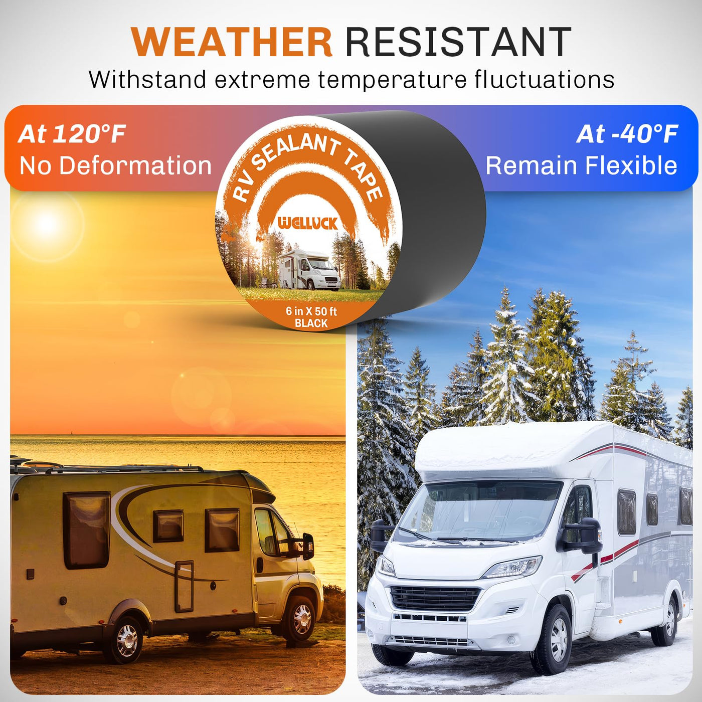 Welluck Butyl Sealant Tape, 6 Inch X 50 Foot Rv Roof Tape Sealant Roofing Tape Black, Waterproof &Uv Rv Tape For Roof Camper Tra