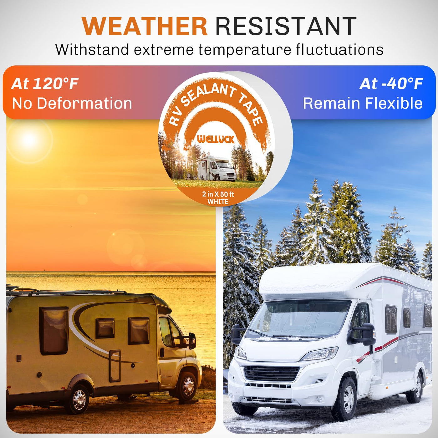 Welluck Rv Roof Tape Sealant Roofing Tape, 2 Inch X 50 Foot Natural White Rv Tape For Roof Repair Camper Trailer Boat Sealing Le