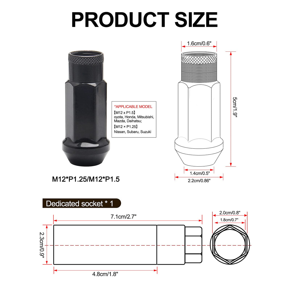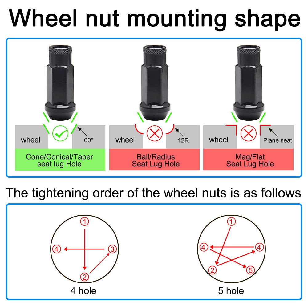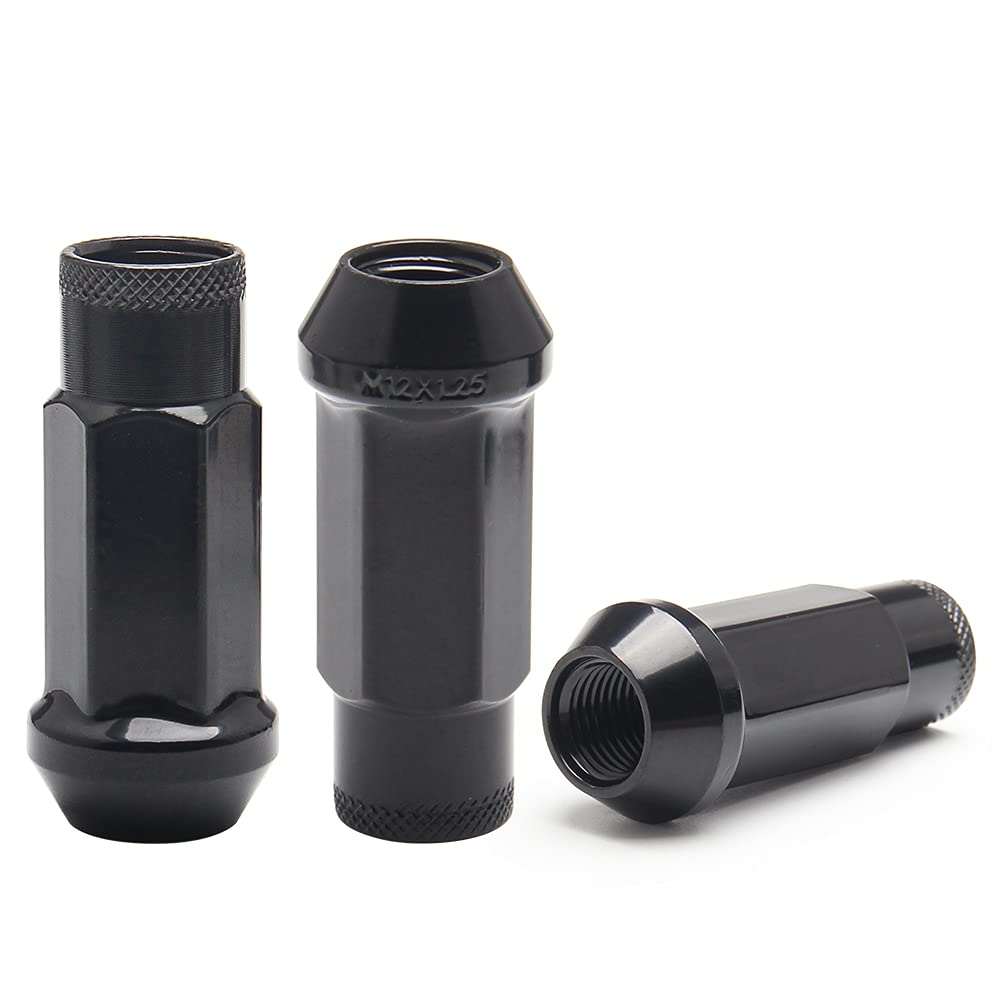 Wenjtp 20Pcs Black Cold Forged Steel 12Mm*1.5 Lug Nuts Extended Tuner Wheel Nuts Modified Nuts Open End Compatible With Various