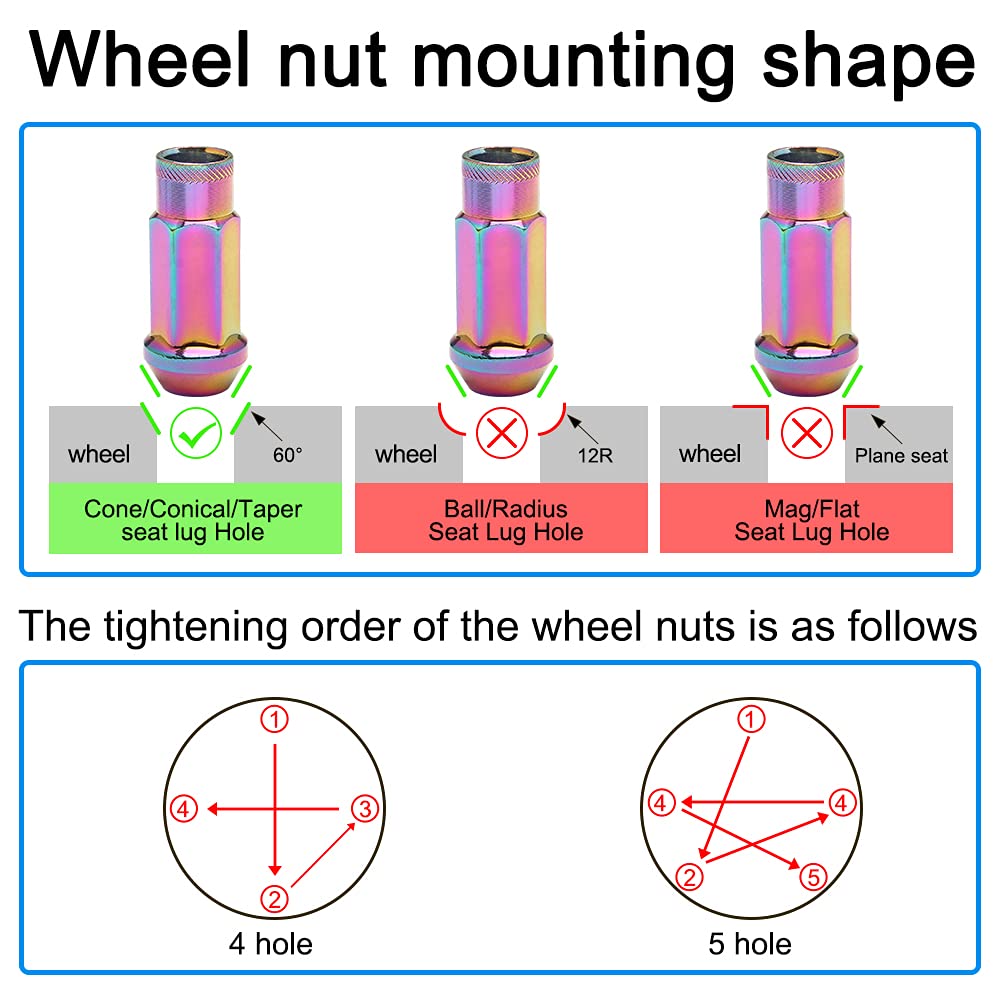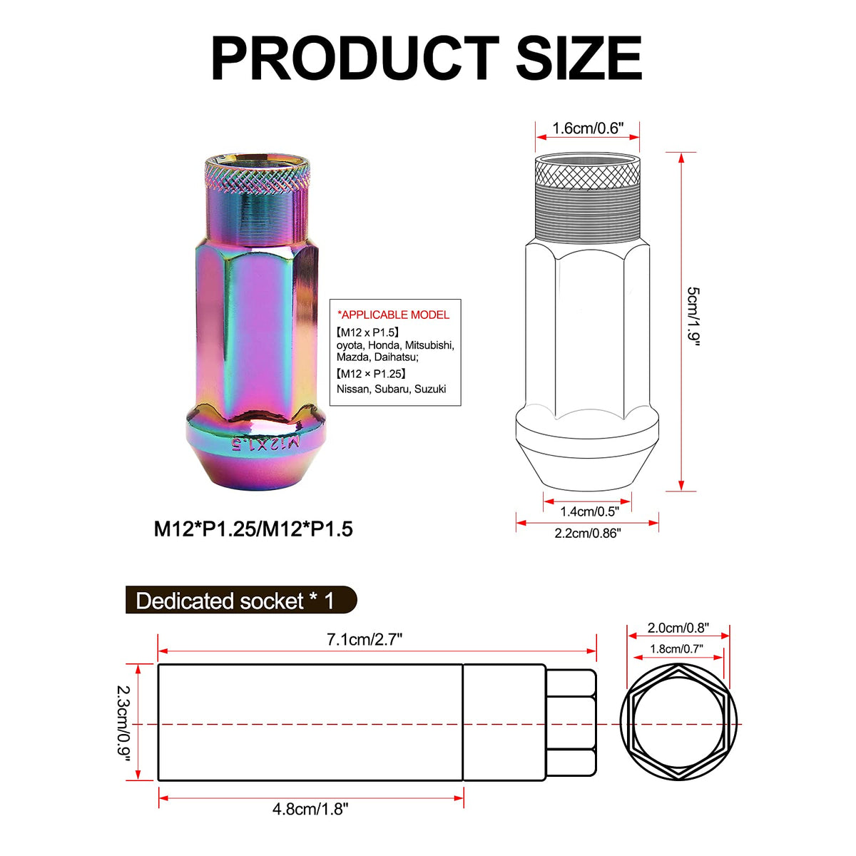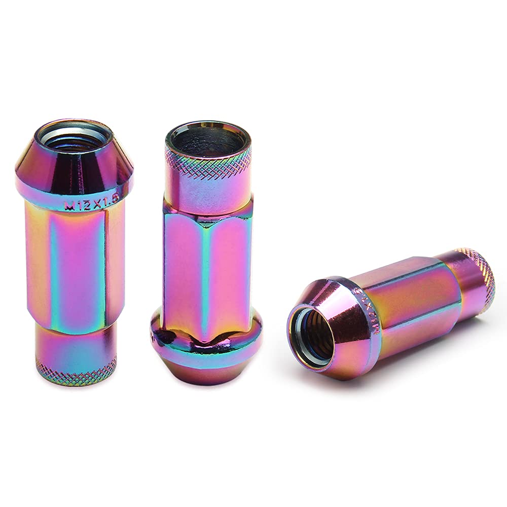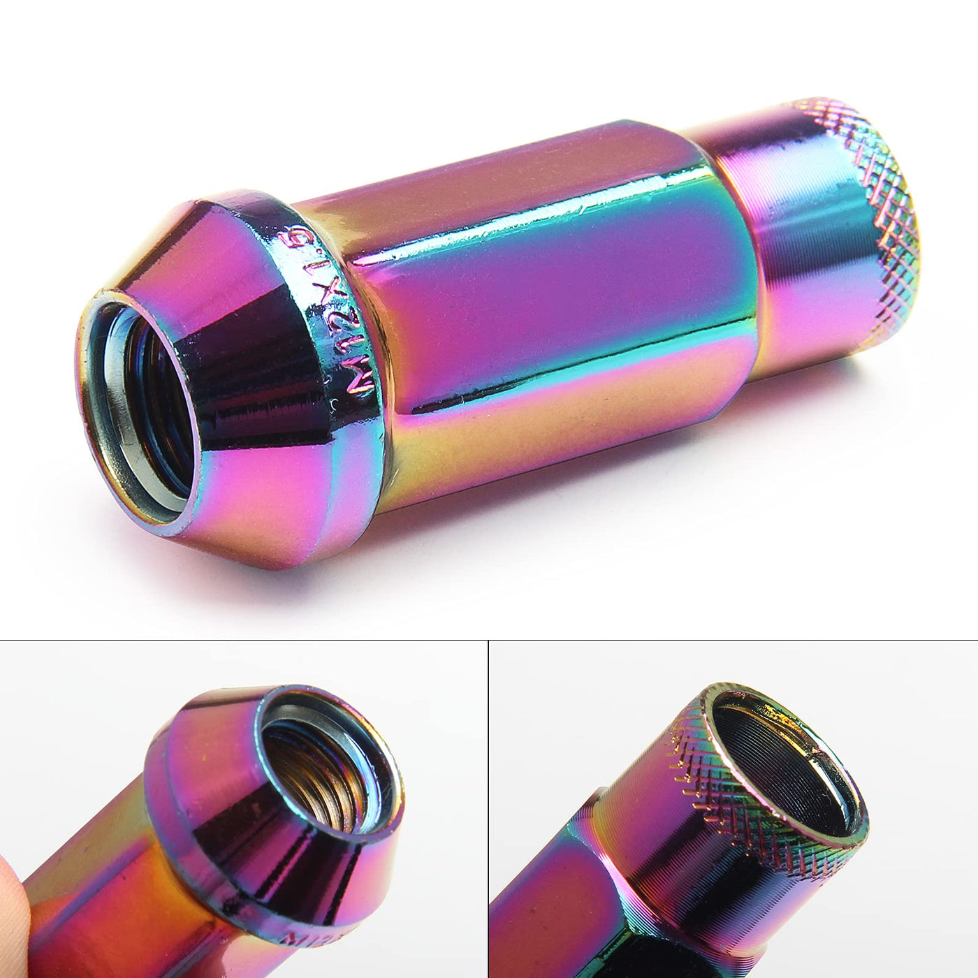 Wenjtp 20Pcs Neochrome Cold Forged Steel 12Mm*1.5 Lug Nuts Extended Tuner Wheel Nuts Modified Nuts Open End Compatible With Vari