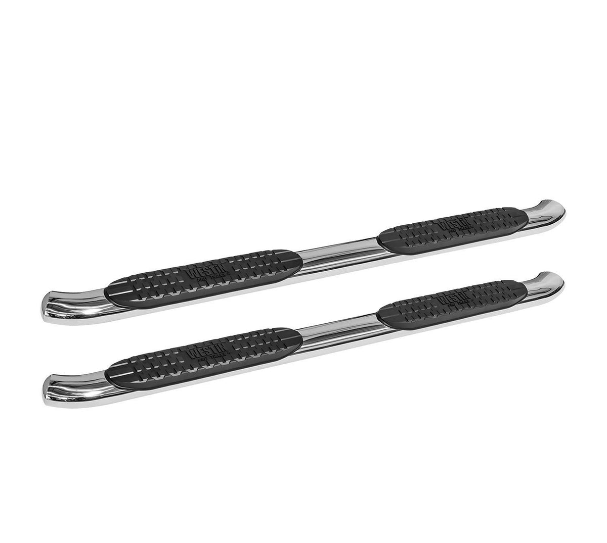 Westins Pro Traxx 4 Oval Nerf Step Bars feature a 4in. oval tube with a heavy-duty step pad that provides a wider and more secure step area. They feature 30 factory style bends that have seamless domed ends so there are no end-caps or exposed bolt heads. Applications are bolt-on installation.