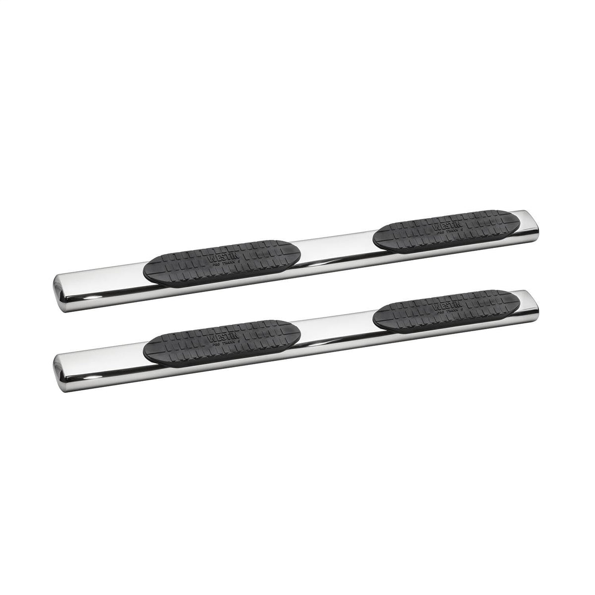 Westin's Pro Traxx6 Oval Tube Step are cab-length steps for full-sized trucks that are functionally ideal with monsterous appeal. They feature extra heavy-duty bold step pads and a unique oval tube shape in a straight tube design. Applications are vehicle specific bolt-on, no-drill and rocker panel mounted. Available in polished stainless steel, backed by a lifetime warranty, and black powder coated mild steel, backed by a 3 year warranty.