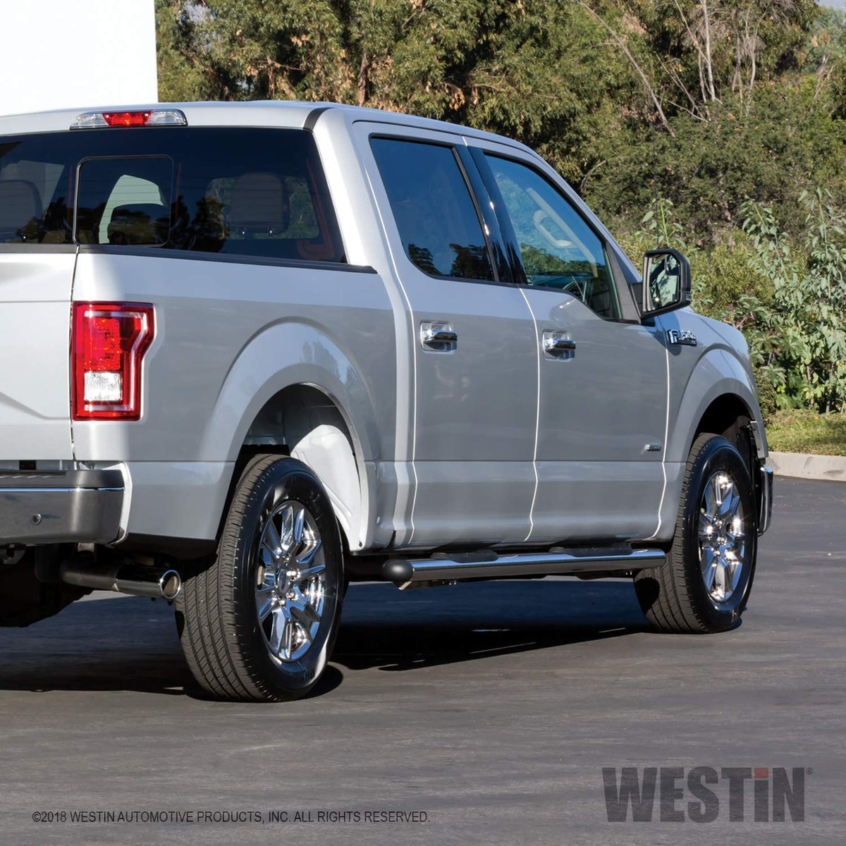 Q: What material are the Westin Nerf Bars made of?A: The Westin Nerf Bars are made from high-quality stainless steel with a polished finish, providing durability and resistance to rust and corrosion.