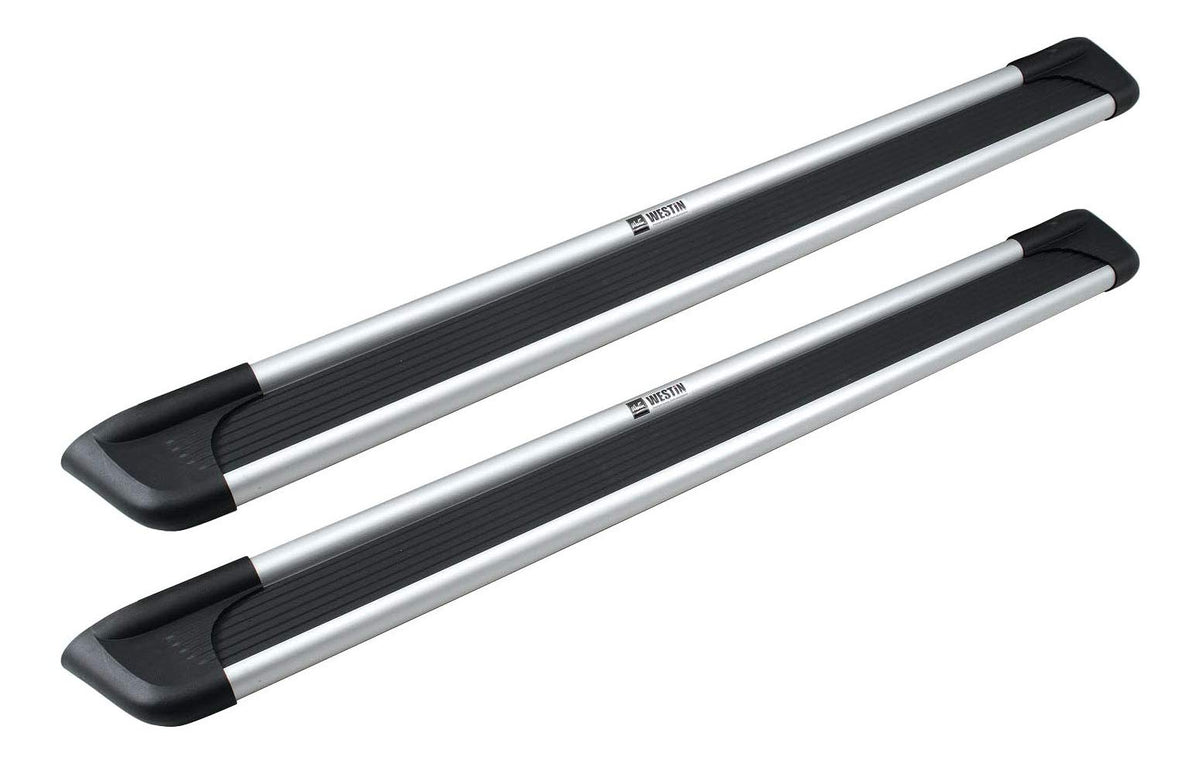 Westin Sure-Grip Running Boards are straight step style designs that are available in six universal lengths (54 inch, 69 inch, 72 inch, 79 inch, 85inch, 93 inch) and feature a cradle mounting technique. Universal running boards require a 27-series vehicle specific mounting kit (sold separately). Sure-Grip Running Boards are made of an extruded aluminum base board and feature a slip resistant rubber step area and stylized molded end-caps for a finished look. For added function, Westin offers an optional Sure-Grip Running Board Light Kit PN# 27-6000 (sold separately) to light the step area when doors are in the open position. Sure-Grip Running Boards carry a 5 year warranty for Brite, Brushed, and Black finish.
