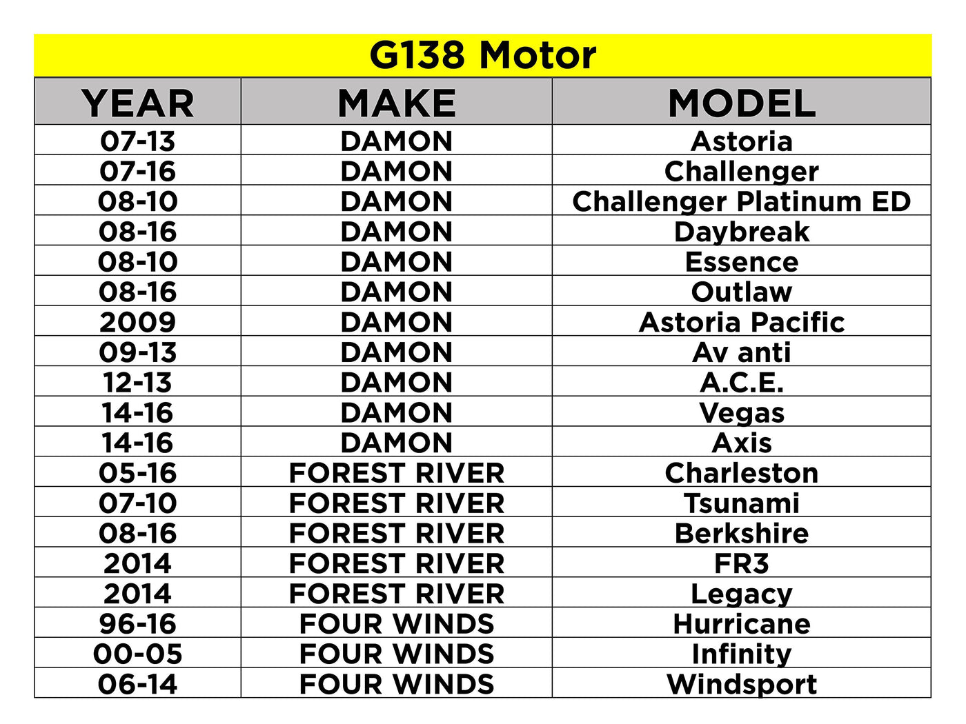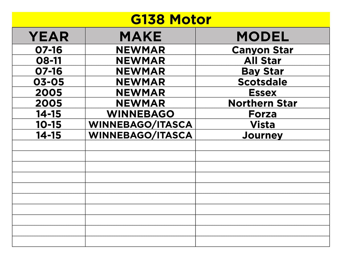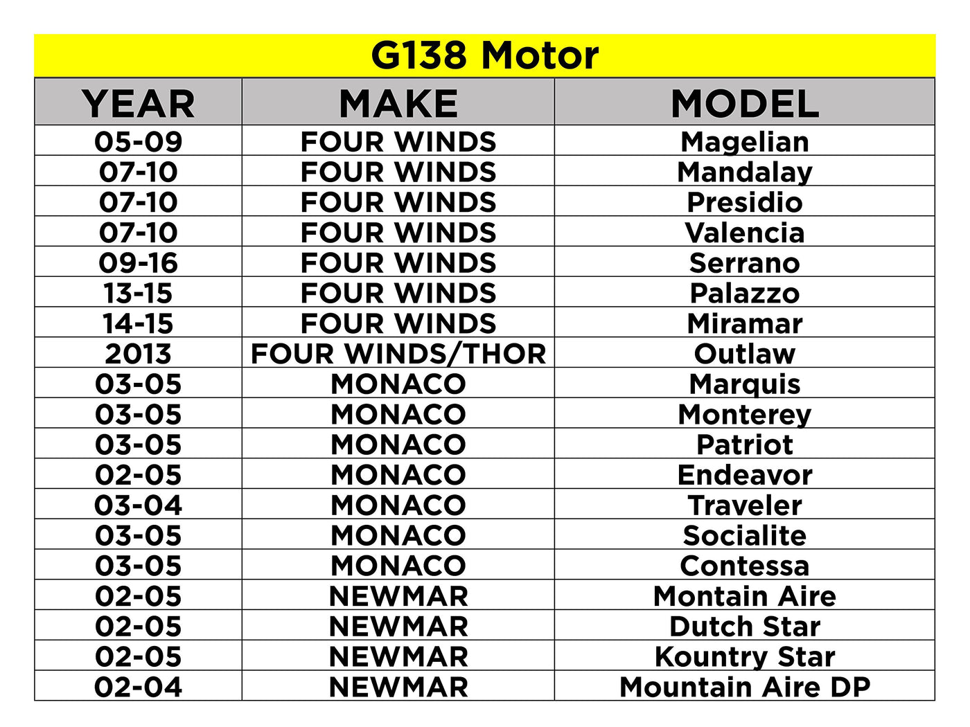 Q: Is the Wexco G138-400.01000.5512 wiper motor compatible with Class A Recreational Vehicles?A: Yes, the Wexco G138-400.01000.5512 wiper motor is commonly found on Class A Recreational Vehicles (RVs), ensuring compatibility for this application.