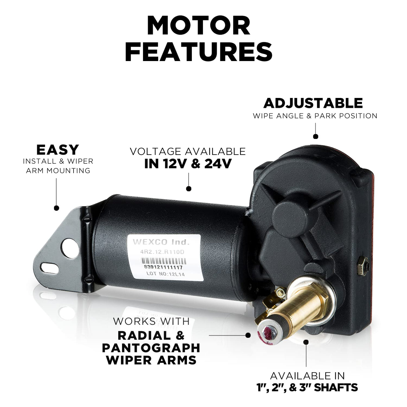 Wexco Wiper Motor, 4R2.24.R110D, Two And A Half Inch (2.5'') Shaft, 24V