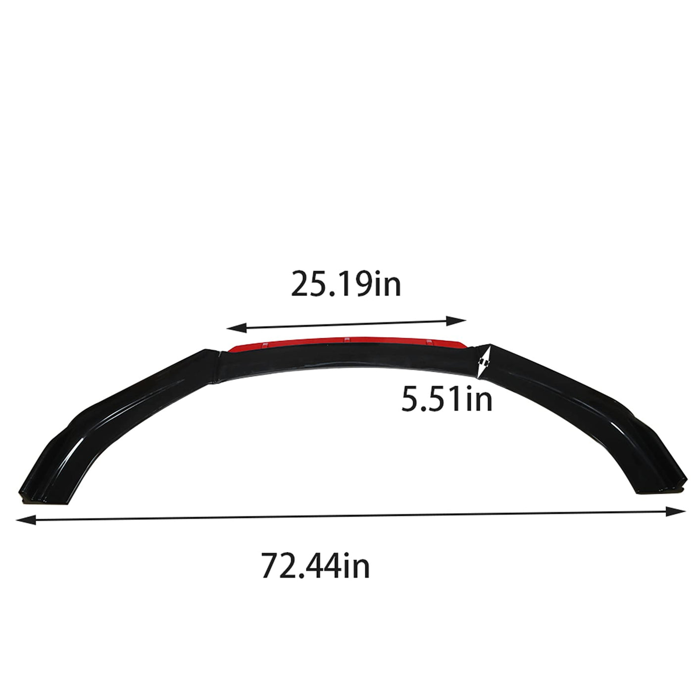 Specification:Type: Front Lip Bumper Body KitsColor: Black, RedPlacement on Vehicle: Front, LowerFitment Type: Direct ReplacementFitment:Universal fitment, be sure to measure the installation area before purchasingImportant:Professional installation is strongly recommendedPackage Including:1 x set of front bumper cover lip (4 pieces)1 x bag of screwsAs shown