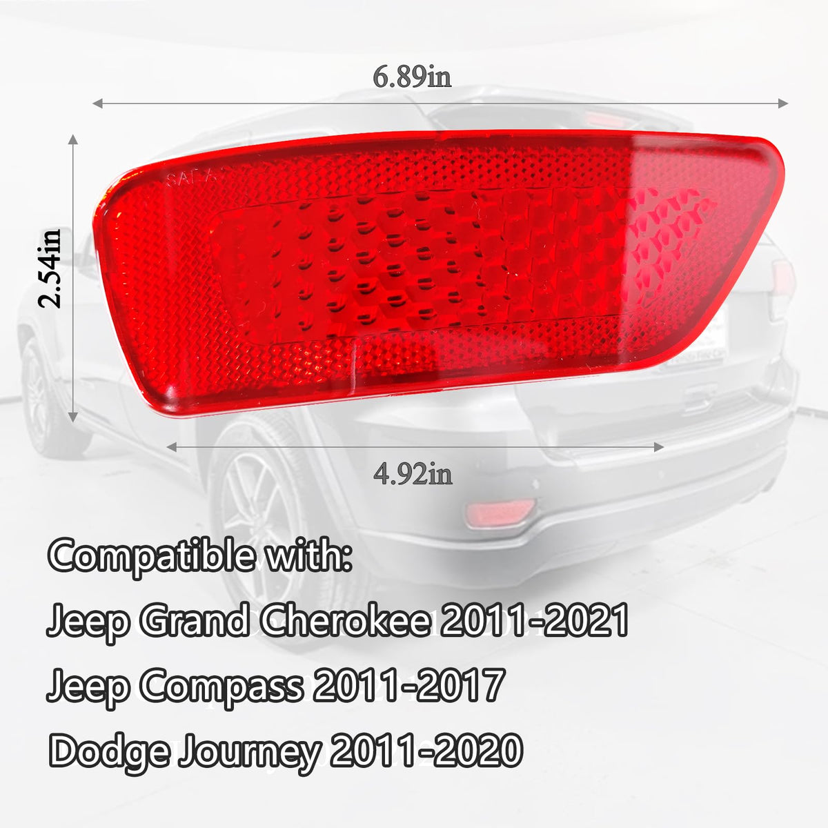 Q: Is the WGOHUI bumper trim reflector compatible with my 2013 Jeep Grand Cherokee?A: Yes, the WGOHUI bumper trim reflector is compatible with the Jeep Grand Cherokee models from 2011 to 2021, including your 2013 model.