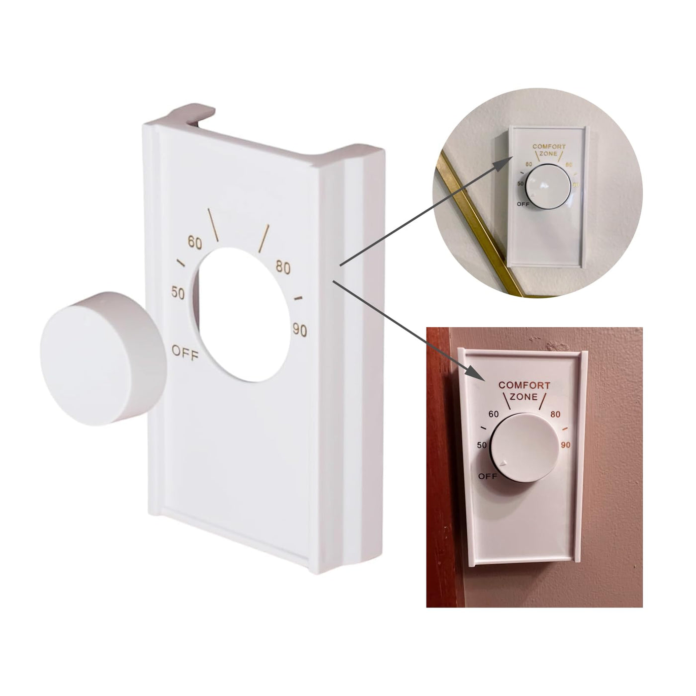 Q: What is included in the package when I purchase this thermostat cover?A: The package includes one line volt thermostat cover and one line volt knob, providing everything you need for installation.