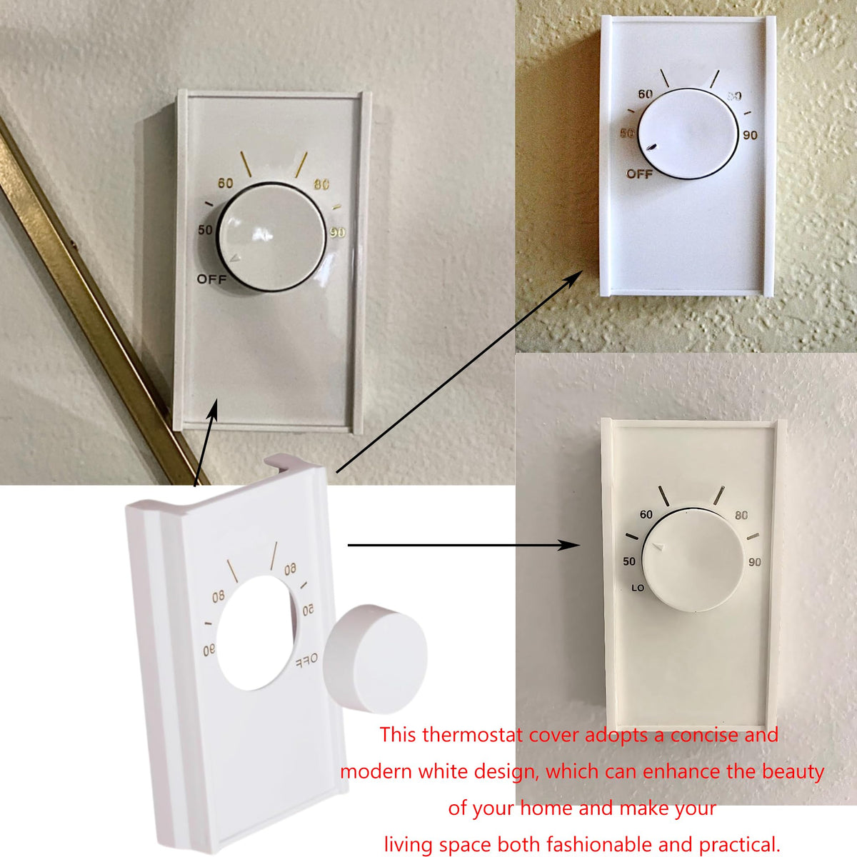 Q: Can this thermostat cover enhance the aesthetics of my home?A: Yes, the stylish white finish of the thermostat cover adds a clean and modern look, enhancing the overall aesthetics of your living space.