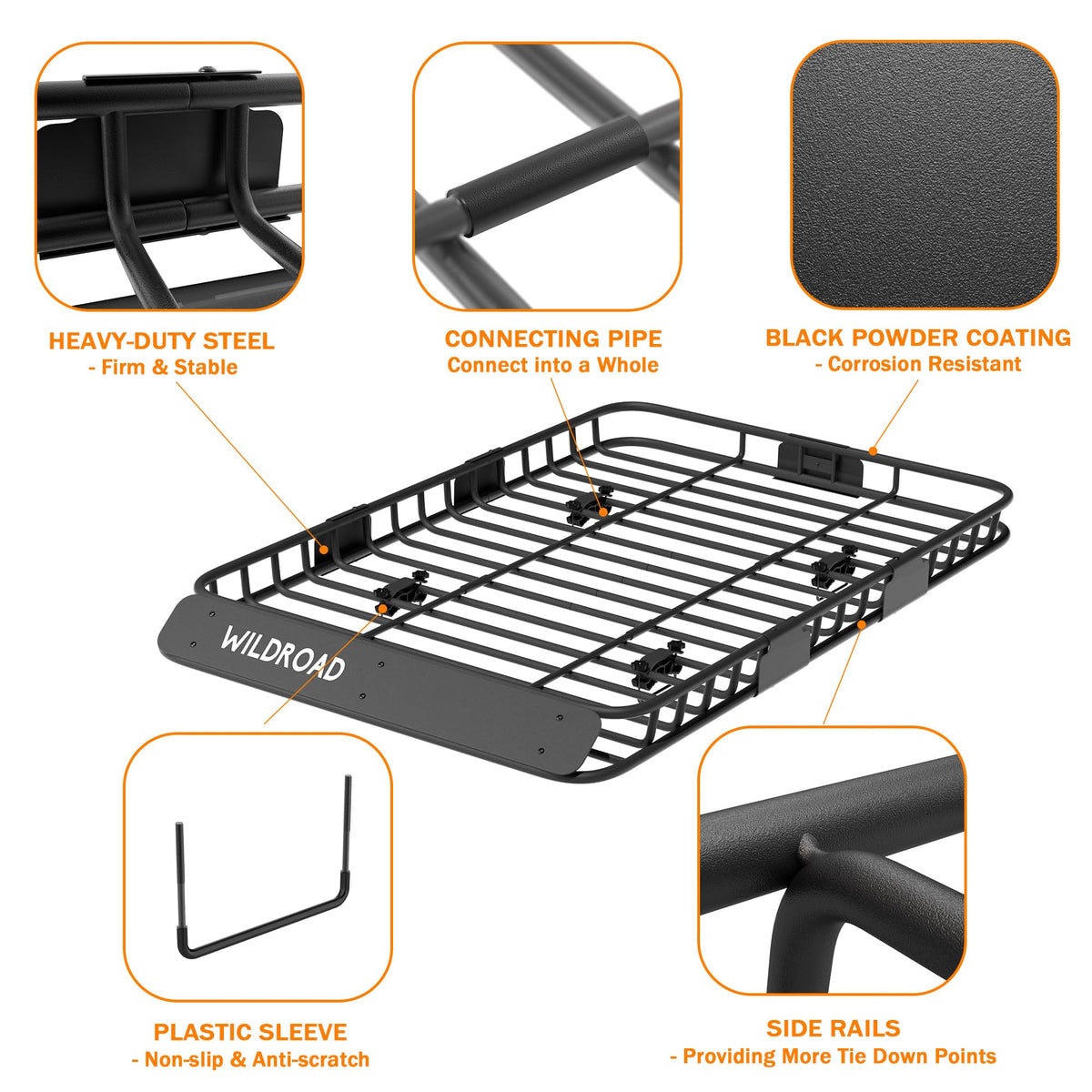 Wildroad Roof Rack Cargo Basket, Upgraded 4 Fence Car Roof Basket With Extension, 64''X 39''X 4'' Universal Car Top Luggage H