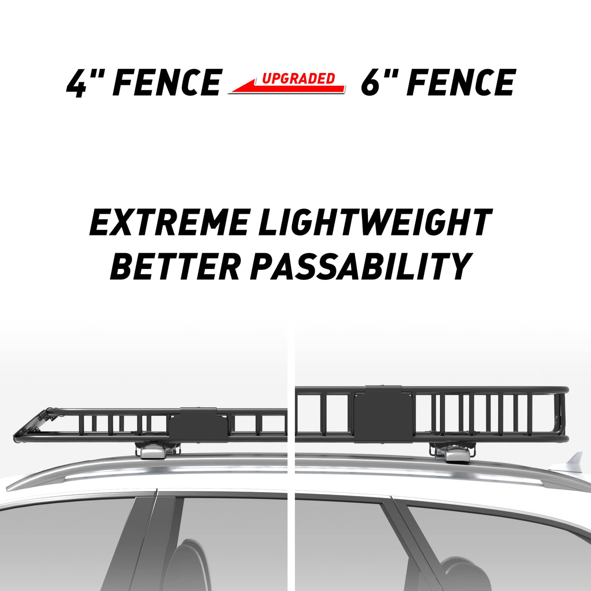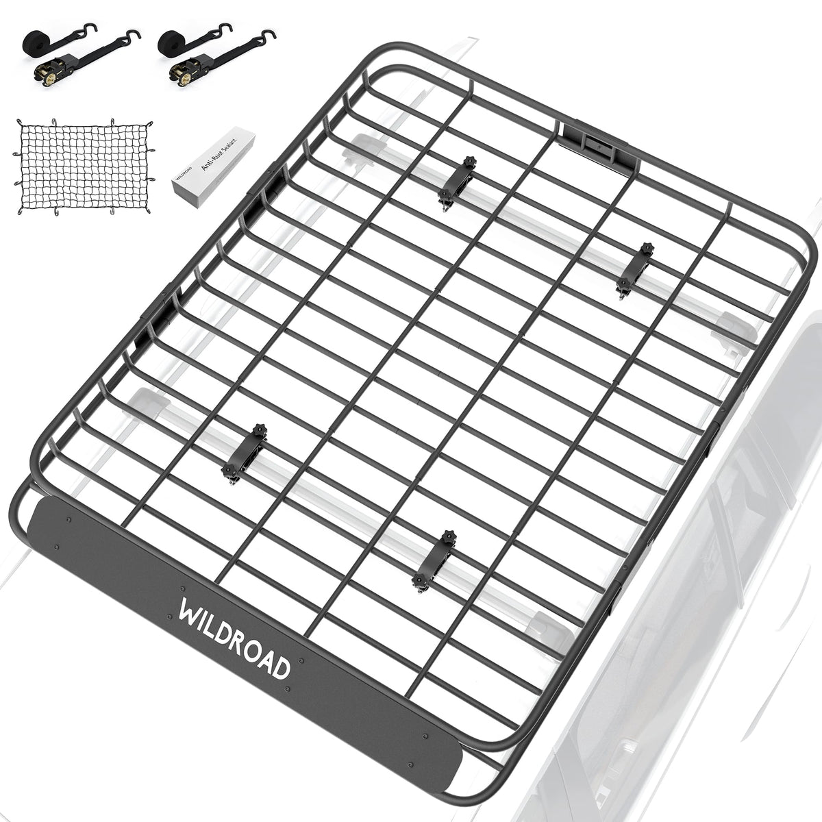Wildroad Roof Rack Cargo Basket, Upgraded 4 Fence Wide Car Roof Basket, 64''X 50''X 4'' Universal Car Top Carrier Basket With