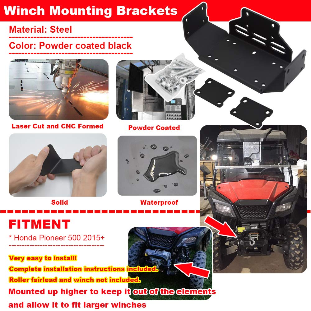 Fitment: Fit 2015-2023 Honda Pioneer 500Fit 2021-2023 Honda Pioneer 520 Specification: Precision Laser Cut Steel, Powder Coated Black Finished, Waterproof And Rust-Resisting, Resistance Against Wear, Long Service Life.