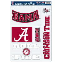 Q: What are the dimensions of the Wincraft Alabama Crimson Tide Decal?A: The decal sheet measures 11x17 inches, and it includes multiple decals of various sizes to suit different needs.