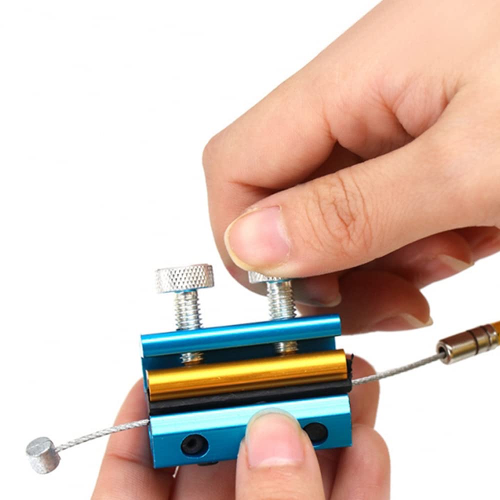 Q: How does the dual screw design of the lube tool benefit me?A: The dual screw design allows you to securely clamp the cable in place, ensuring a tight fit that makes it easier to apply lubricant effectively and safely.