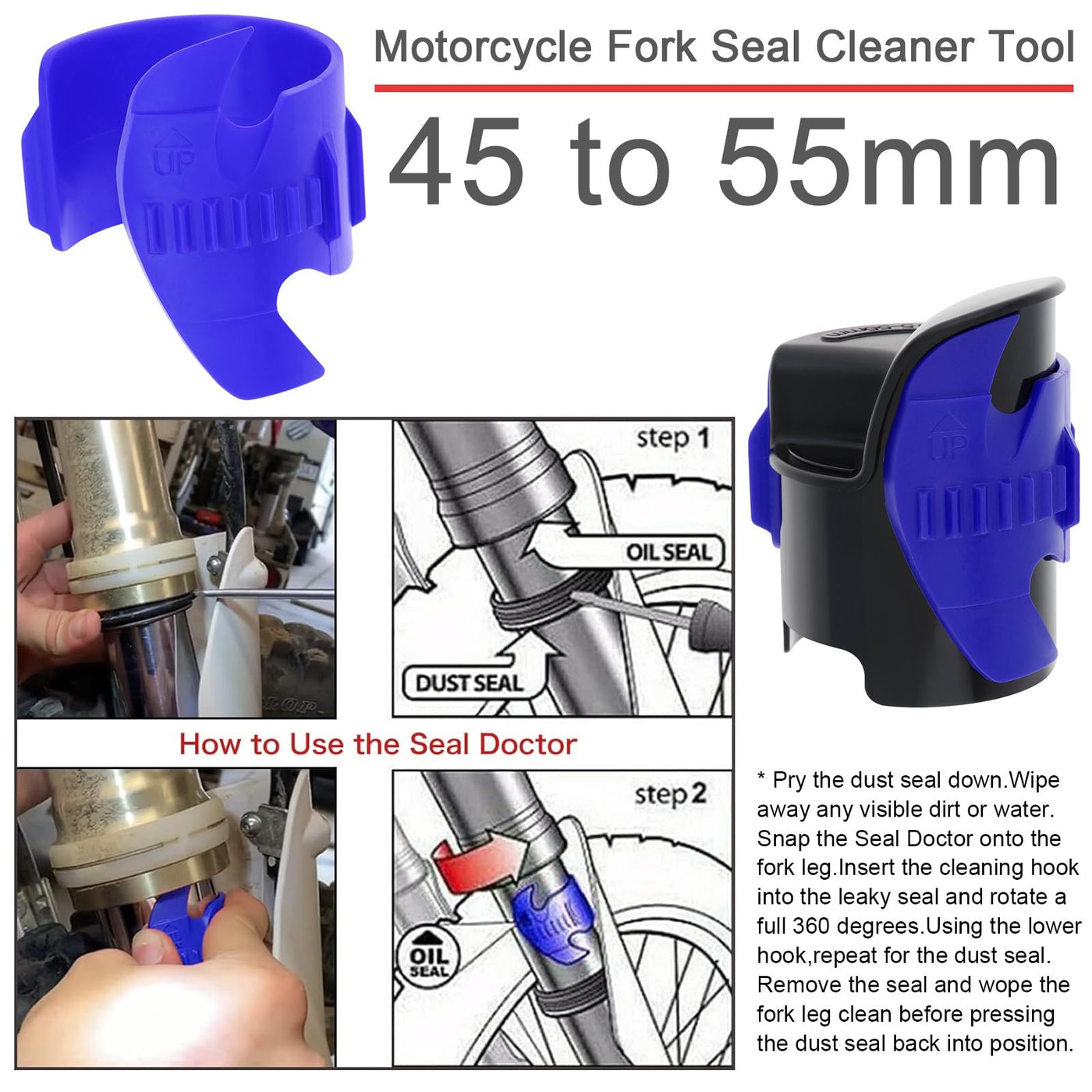 Windance Motorcycle Fork Seal Saver Cleaner,Front Fork Seal Clean Tool, Shock Repairing Absorber Tool 45mm-55mm (Blue)