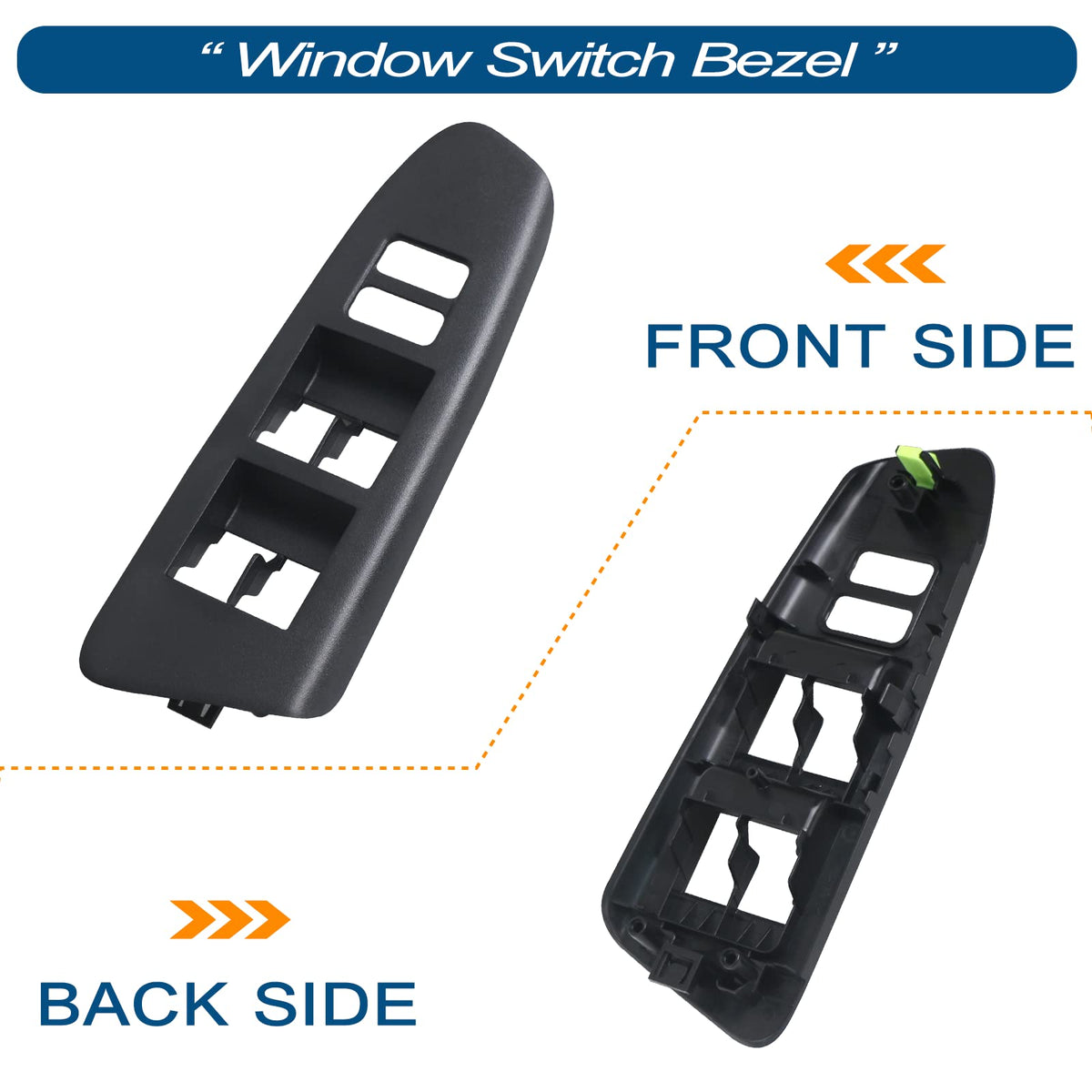 Q: How do I install the window switch bezel cover?A: Installation of the window switch bezel cover is straightforward. Simply remove the old cover from the front door left driver side and replace it with the new cover, ensuring that it fits snugly into place.