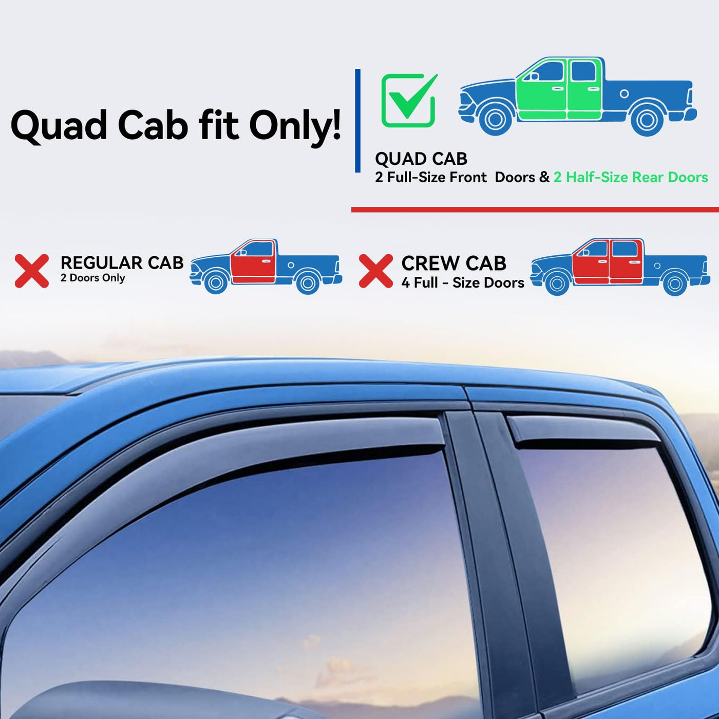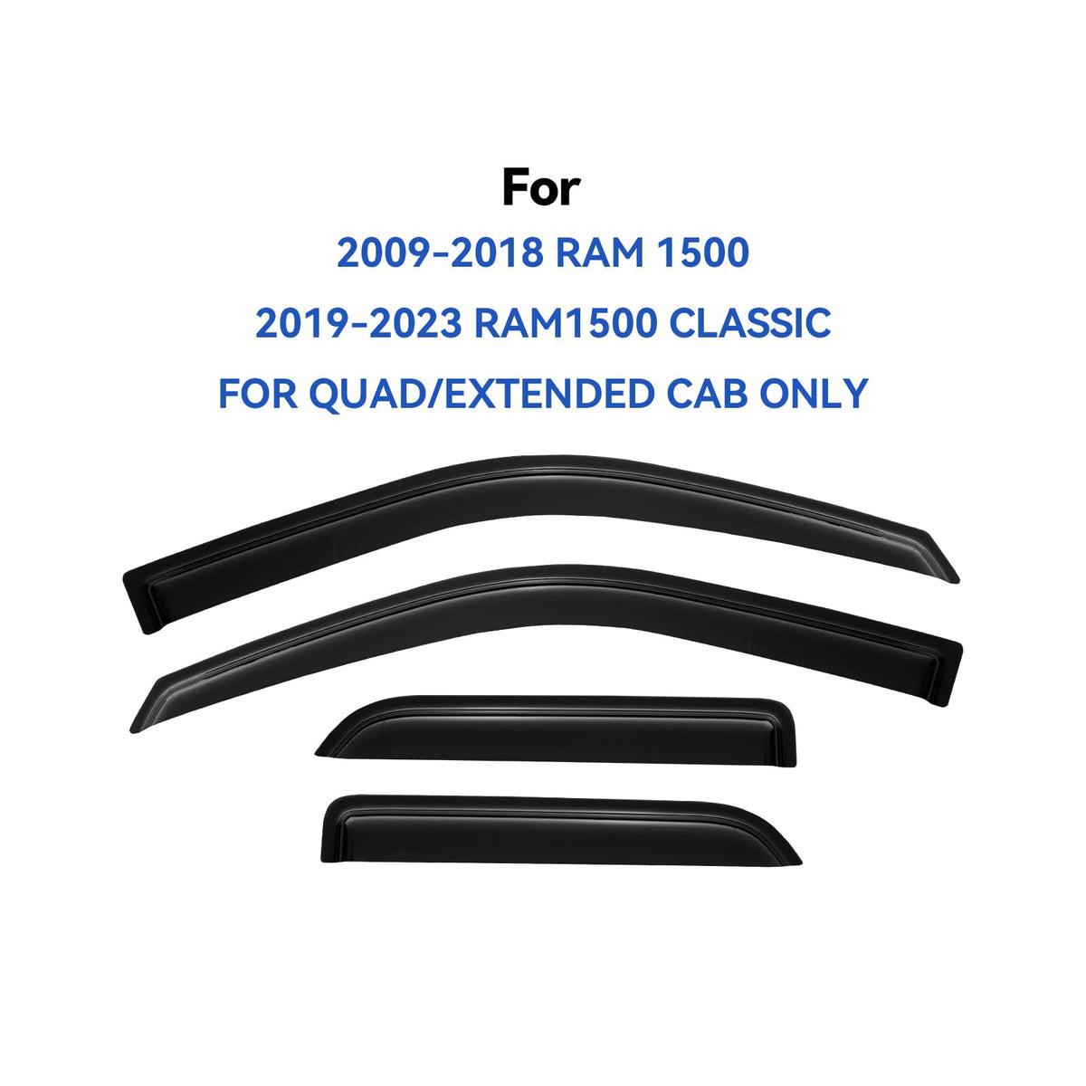 Window Visors Rain Guards For 2009-2018 Dodge Ram 1500 Quad Cab, Out-Channel Window Vent Wind Deflectors Visors Shades For 2019-