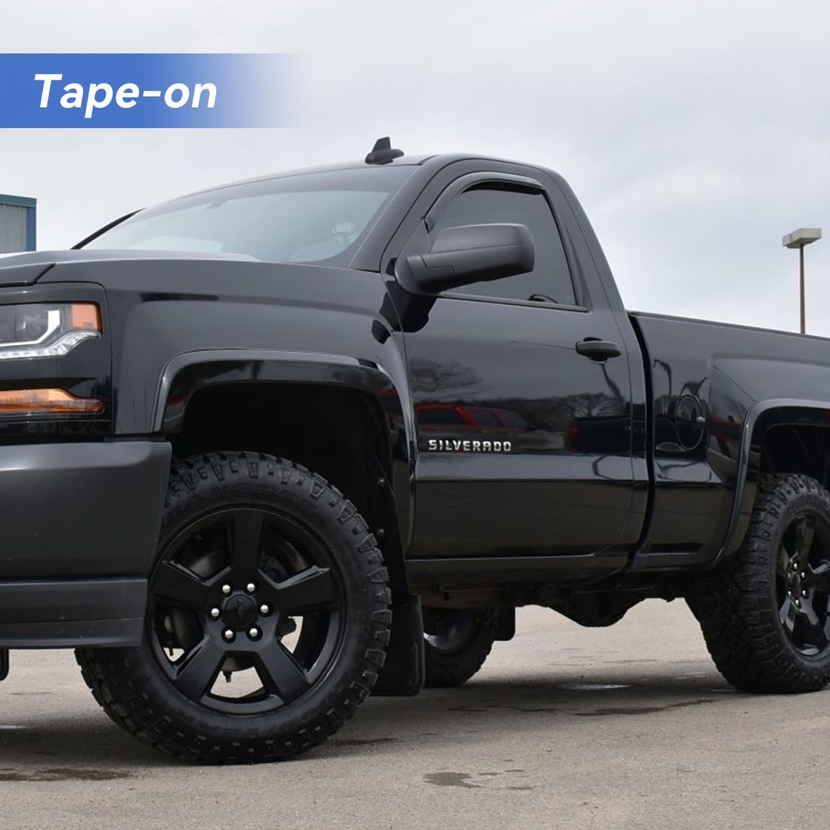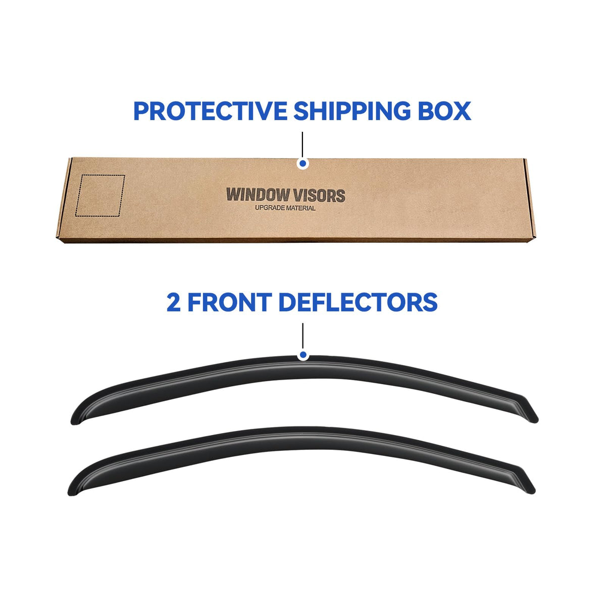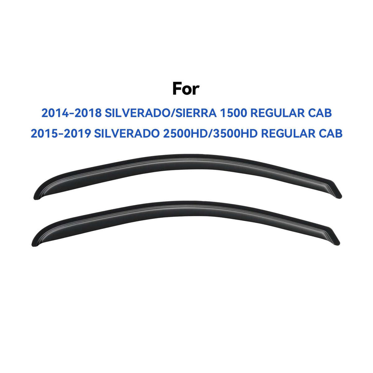 YQAUTEC 2PCS Out-Channel Window Visors Deflectors Rain Guards for 2014-2018 Chevrolet Silverado 1500 Regular Cab; 2015-2019 Chevrolet Silverado 2500 HD Regular Cab; 2015-2019 Chevrolet Silverado 3500 HD Regular Cab; 2014-2018 GMC Sierra 1500 Regular Cab; 2015-2019 GMC Sierra 2500 HD Regular Cab; 2015-2019 GMC Sierra 3500 HD Regular Cab.