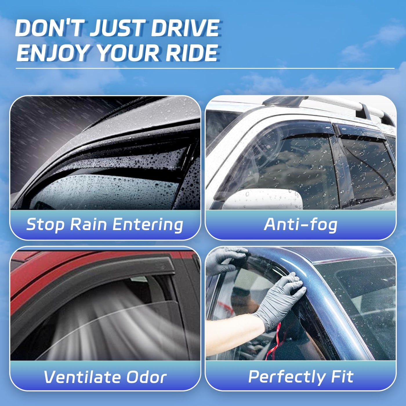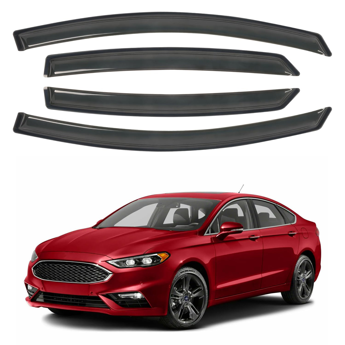 CHYKORLA Window Visors Shield Rain Guards Fit for 2013-2020 Ford Fusion, Outside Mount Window Wind Deflectors, Smoke Tinted Vent Visors Shades 2014 2015 2016 2017 2018 2019 CHYKORLA window visors rain guards not only add to your vehicles looks, but also they have a much more practical purpose. They are the value accord accessories of the car. You totally deserve it. Would you like to enjoy breeze on a rainy day while driving, however, the rain would drifted into the car if the windows crack on. If you have the same problem, the window vent visors is your best choice. After installing the window rain deflectors, you could crack on the window to block the rain directly outside. They can also adjust the temperature inside and outside the car to prevent the generation of fog and make driving safer. Maybe you would worry about that the vent visor is difficult to install. Please let go of these worries. You could install them by yourself. 1: test if the rain visors fit for your vehicle.2: Please clean well the surface of your vehicle (Best wiped with alcohol). 3: Tear a little 3m tape at both ends, apply to the right position. 4: stick on them and press firmly. All the work finish. Please avoid washing your car within 48 hours after installation.