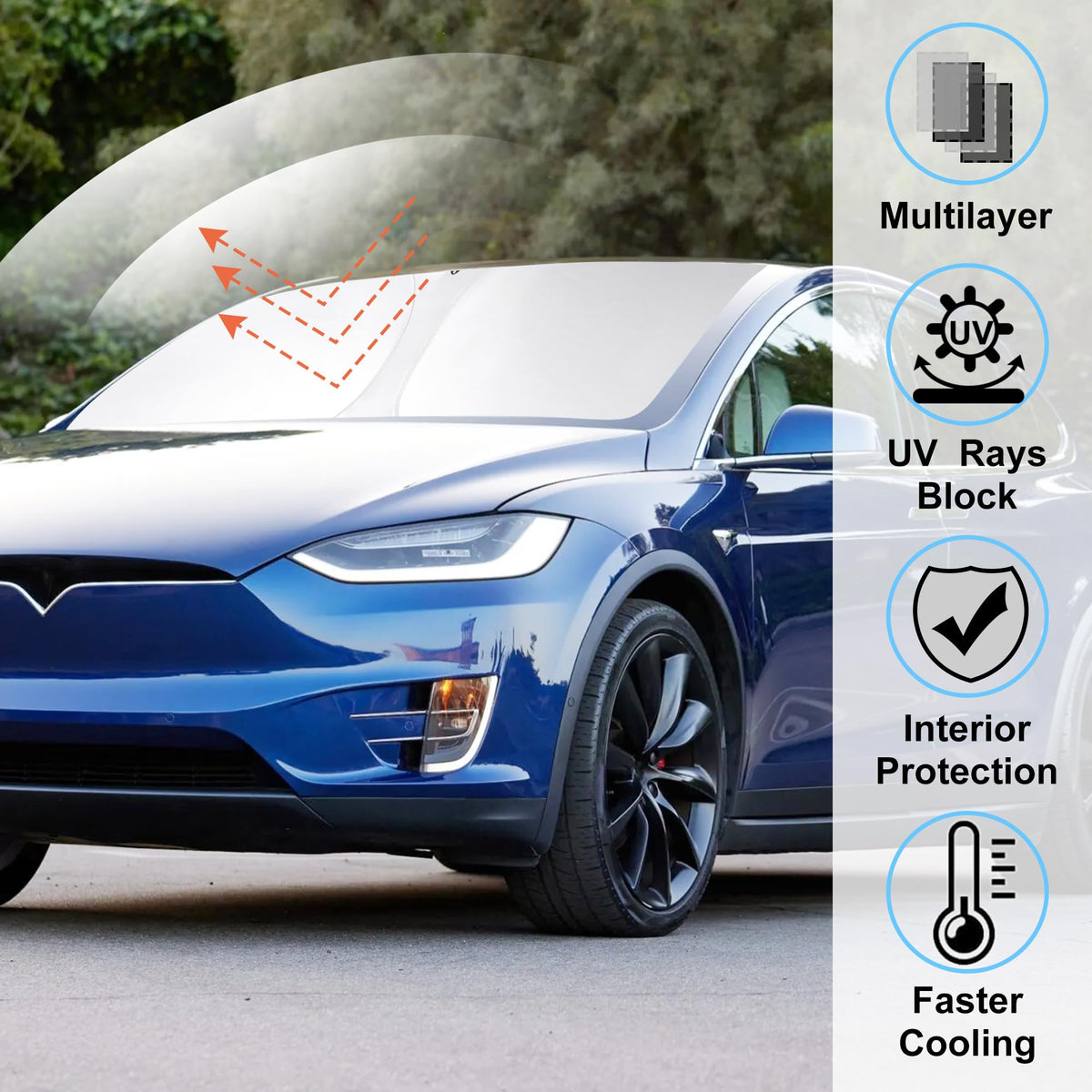 Windshield Sun Shade Compatible With 2016-2024 2025 Tesla Model X Tesla X Accessories Foldable Sunshade Front Sun Visor Protecto