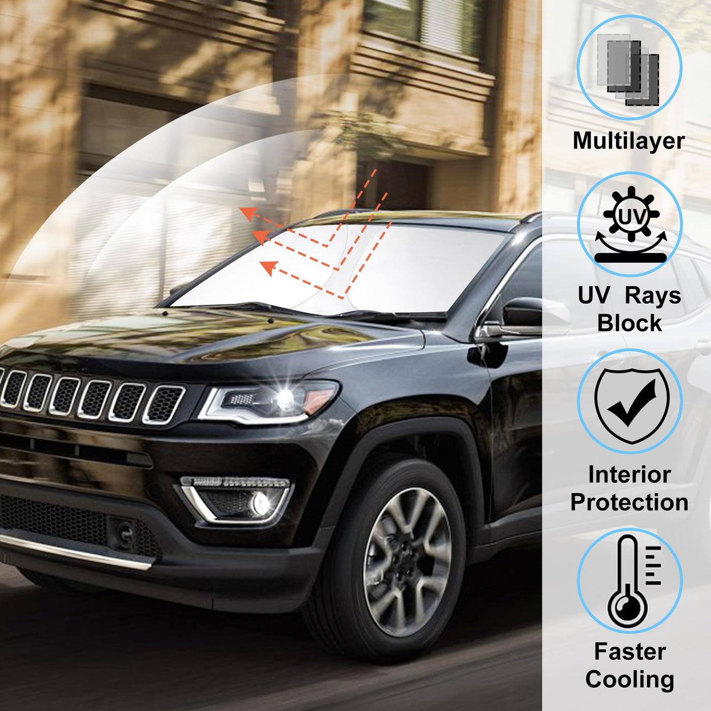 Windshield Sun Shade Custom Fit For 2017-2024 Jeep Compass Accessories Foldable Sunshade Sun Blocker Protect Car From Sun Rays &