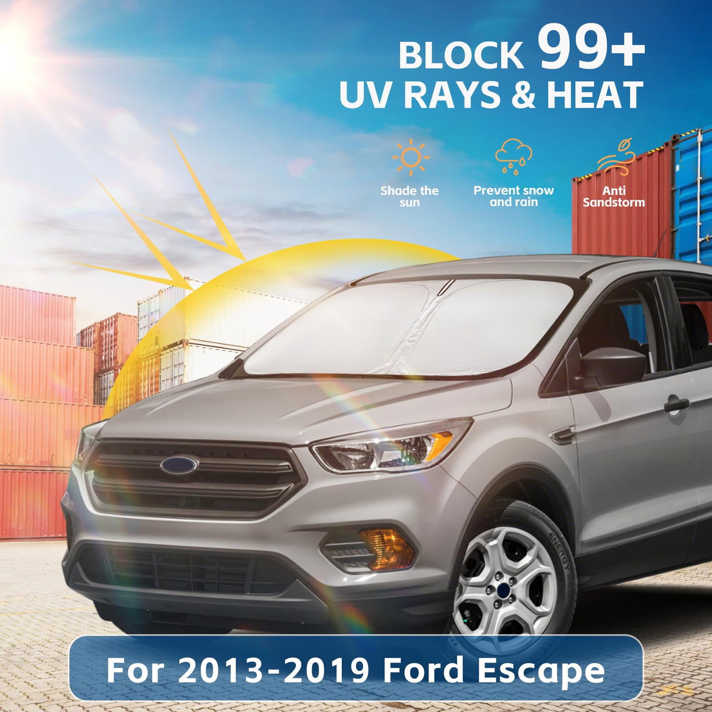 Windshield Sun Shade For Ford Escape 2013-2019 Double Layer 240T Front Window Shade Custom Fit Escape Sun Visor Foldable Shade B