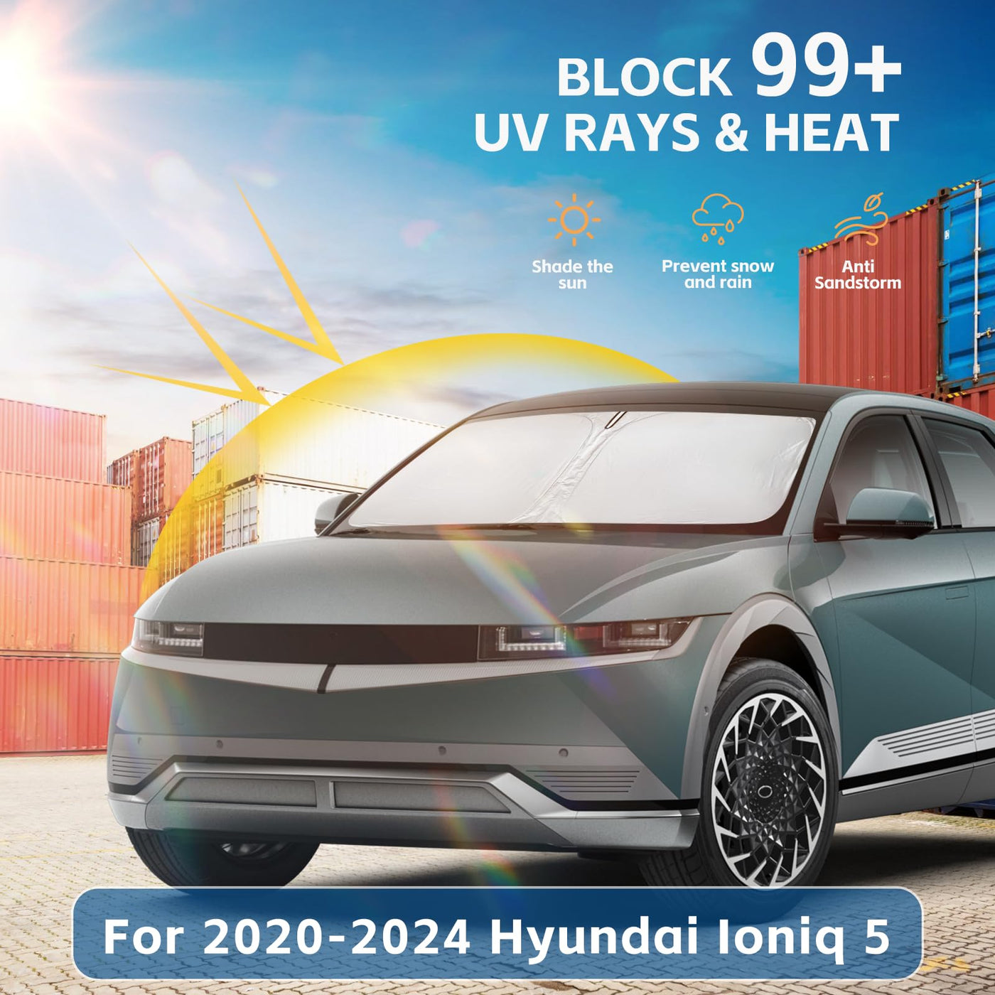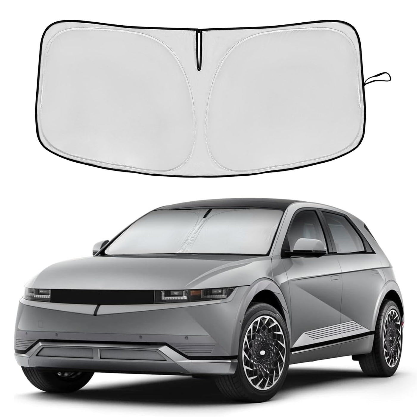 Windshield Sun Shade For Hyundai Ioniq 5 2020-2024 Double Layer 240T Front Window Shade Custom Fit Sun Visor Foldable Shade Bloc
