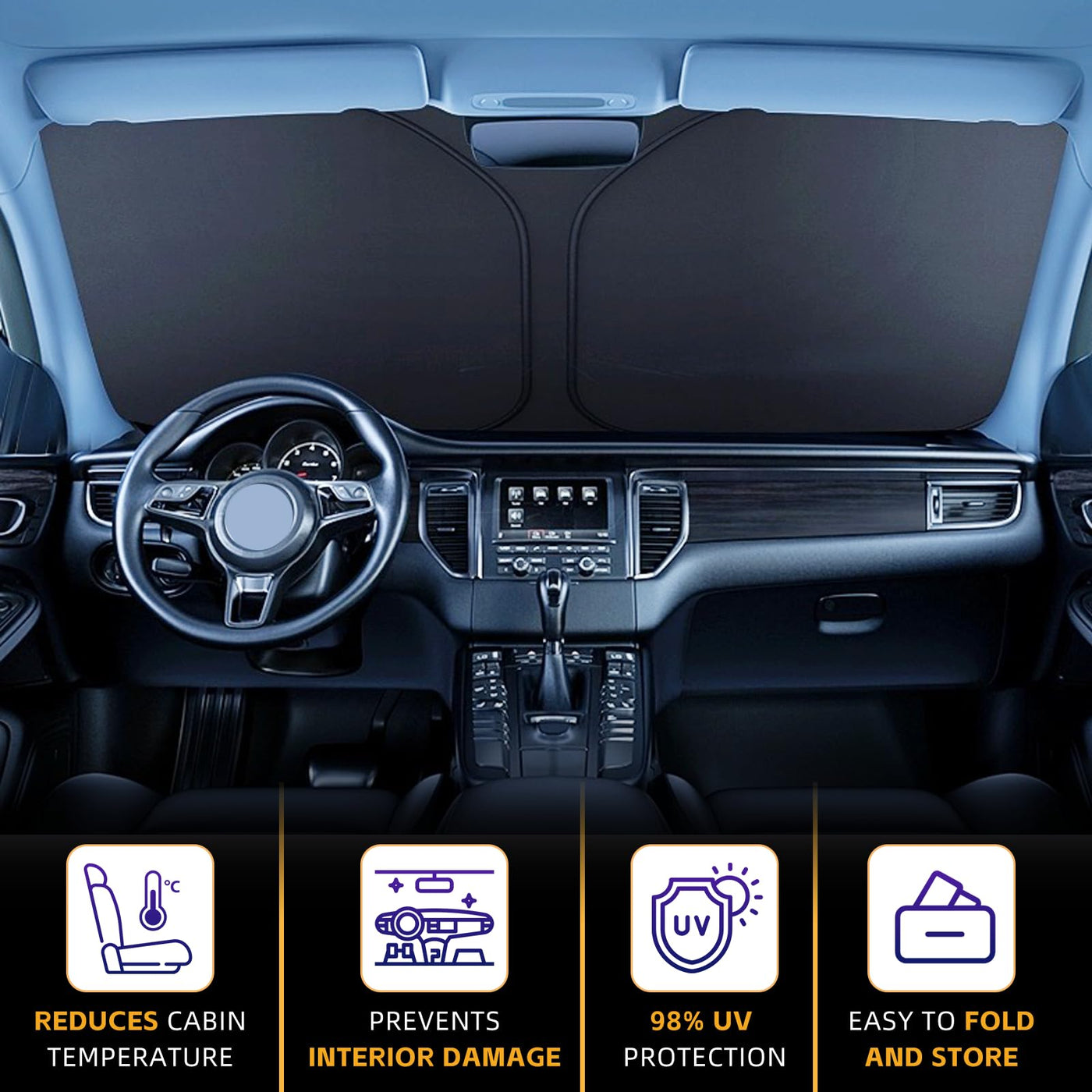 Sunshade windshield Custom for 2016 - 2020 2021 2022 2023 Tacoma TRD Off-Road, SR, SR5, TRD Sport, TRD Pro, Limited 2 door 4 door Pickup.Our AuyNeas front windshield shade is precisely cut for Tacoma.Precise fit design and reinforced steel rings make enough to make the shade fit precisely to the window, no need for suction cups to hold it in place.