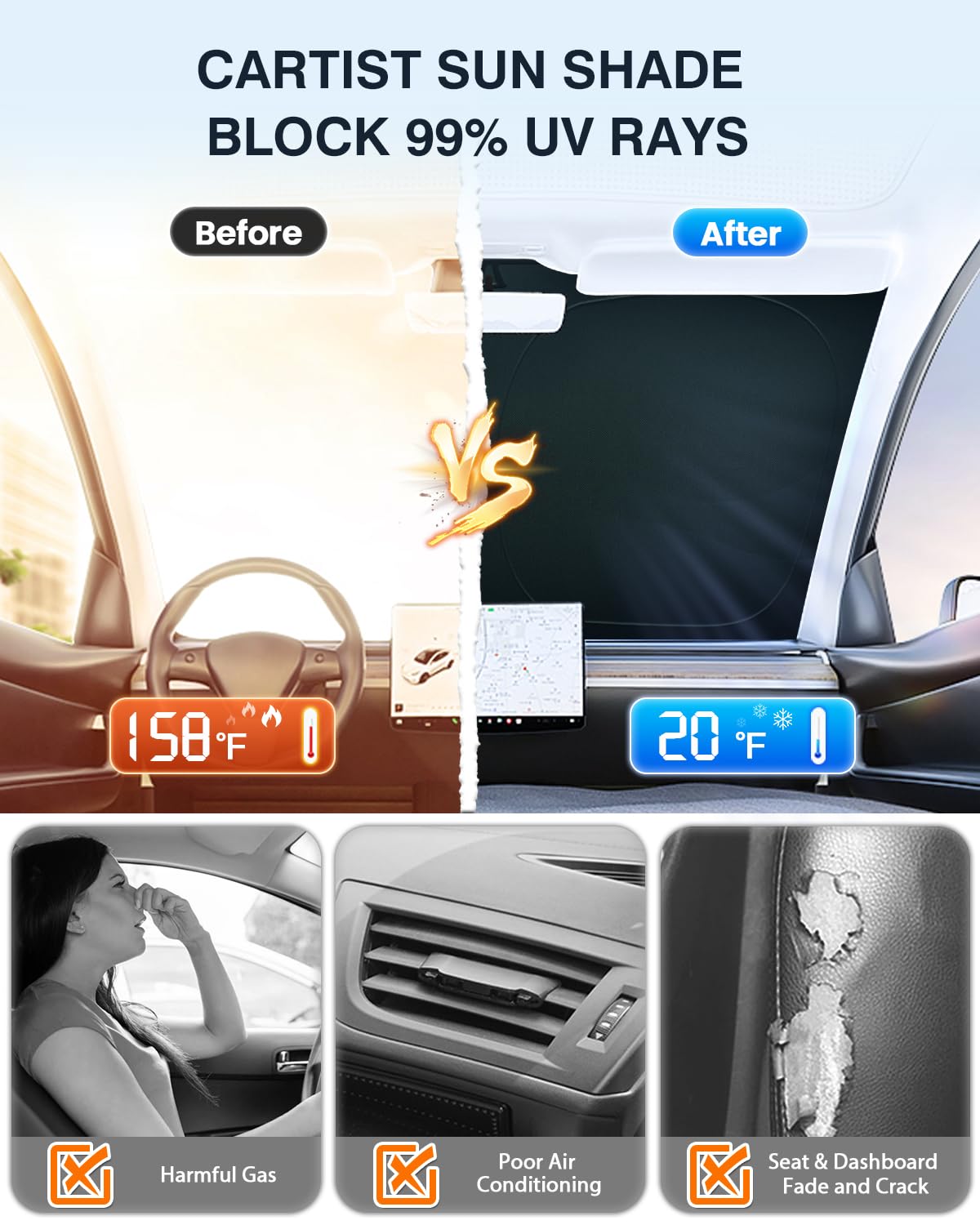 Windshield Sun Shade For Toyota Tundra (Limited, Sr5, Platinum, Trd Pro) 2022-2025, Custom Fit Foldable Front Window Sunshade Su
