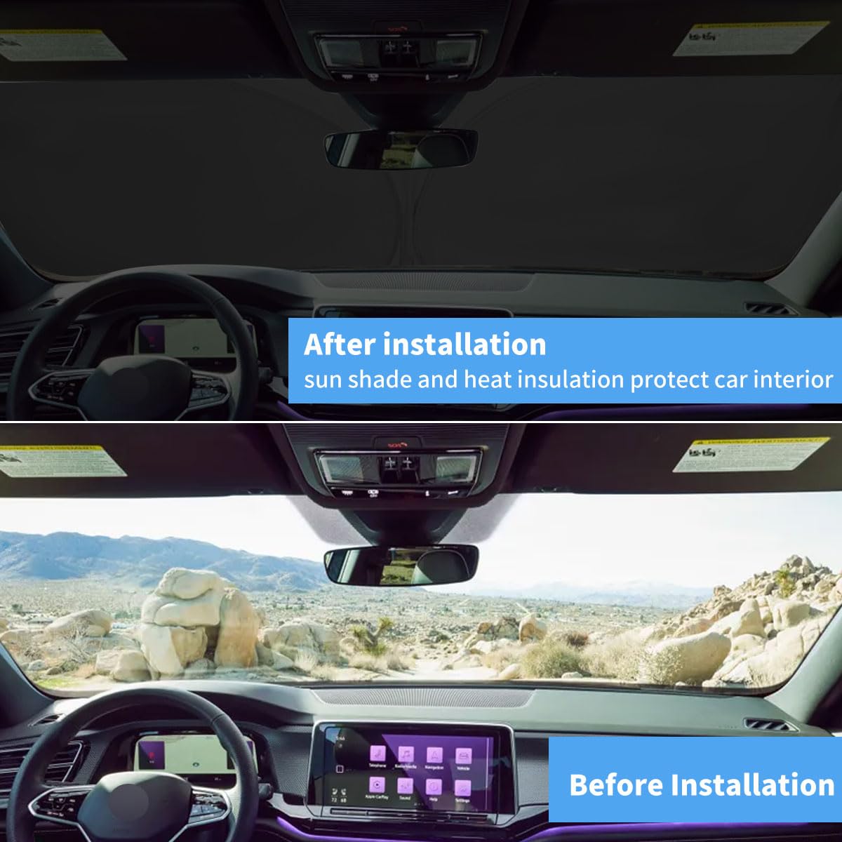 Protect and Cool for Your 2018 2019 2020 2021 2022 2023 2024 2025 VW Atlas in Style! Keep for your 2018-2025 VW Atlas comfortable and safeguarded from the sun with our premium Windshield Sun Shade, designed specifically for model years 2018 to 2025. This custom-fit sun shade provides exceptional protection and cooling, ensuring your vehicle stays cool and its interior remains pristine. Why Choose Our Windshield Sun Shade? Perfect Fit Guarantee: The Sunshade Cover is Custom-designed for Volkswagen Atlas 2025 2024 2023 2022 2021 2020 2019 2018, ensuring complete coverage and maximum protection. Superior Protection: With Windshield Protector for Volkswagen Atlas 2018-2025, prevents interior fading, cracking, and warping caused by prolonged sun exposure. Convenient and Practical: The Auto Sun shade for 2025 -2018 VW Atlas is quick and easy to use, making it a hassle-free addition to your daily routine. Customer Satisfaction: Join thousands of satisfied customers who trust our sun shades to protect their vehicles. Windshield Sunshade for VW Atlas for Sun Visor UV Protection Sun Shade Custom Fit Sun Shade for VW Atlas 2018 2019 2020 2021 2022 2023 2024 2025, Car Sun Shade for Volkswagen Atlas Front Windshield Shade For Volkswagen Atlas Sun Blocker For Reflective Sun Shade Heat Shield for VW Atlas, UV Reflector Foldable Sun Shade For VW Atlas , Sun Shade 2025 For Volkswagen Atlas Sun Shade 2025-2018 For Volkswagen Atlas