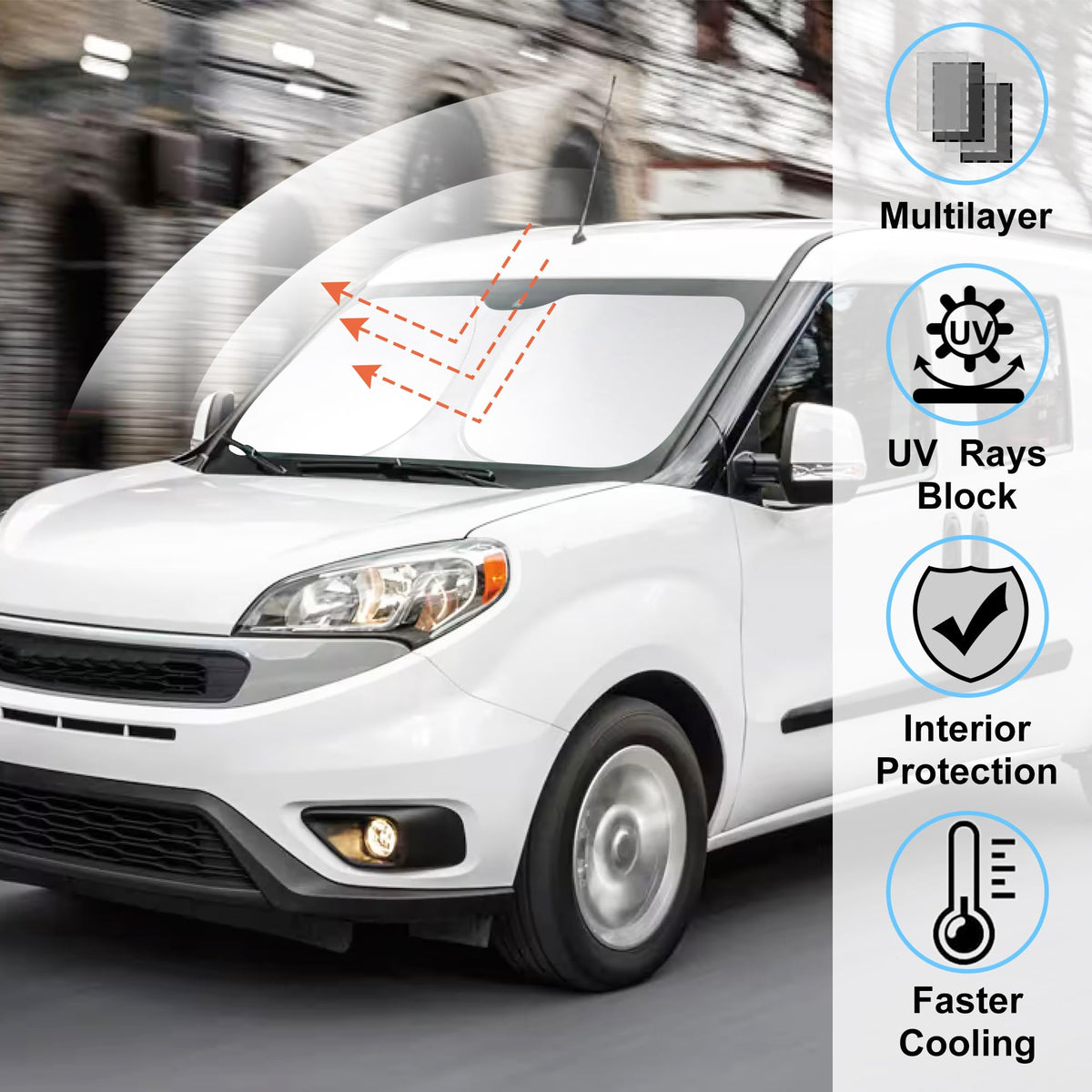 Windshield Sun Shade Rays Reflector Custom Fit 2014-2024 2025 Dodge Ram Promaster Accessories Full Size Cargo Van Chassis Cab Cu
