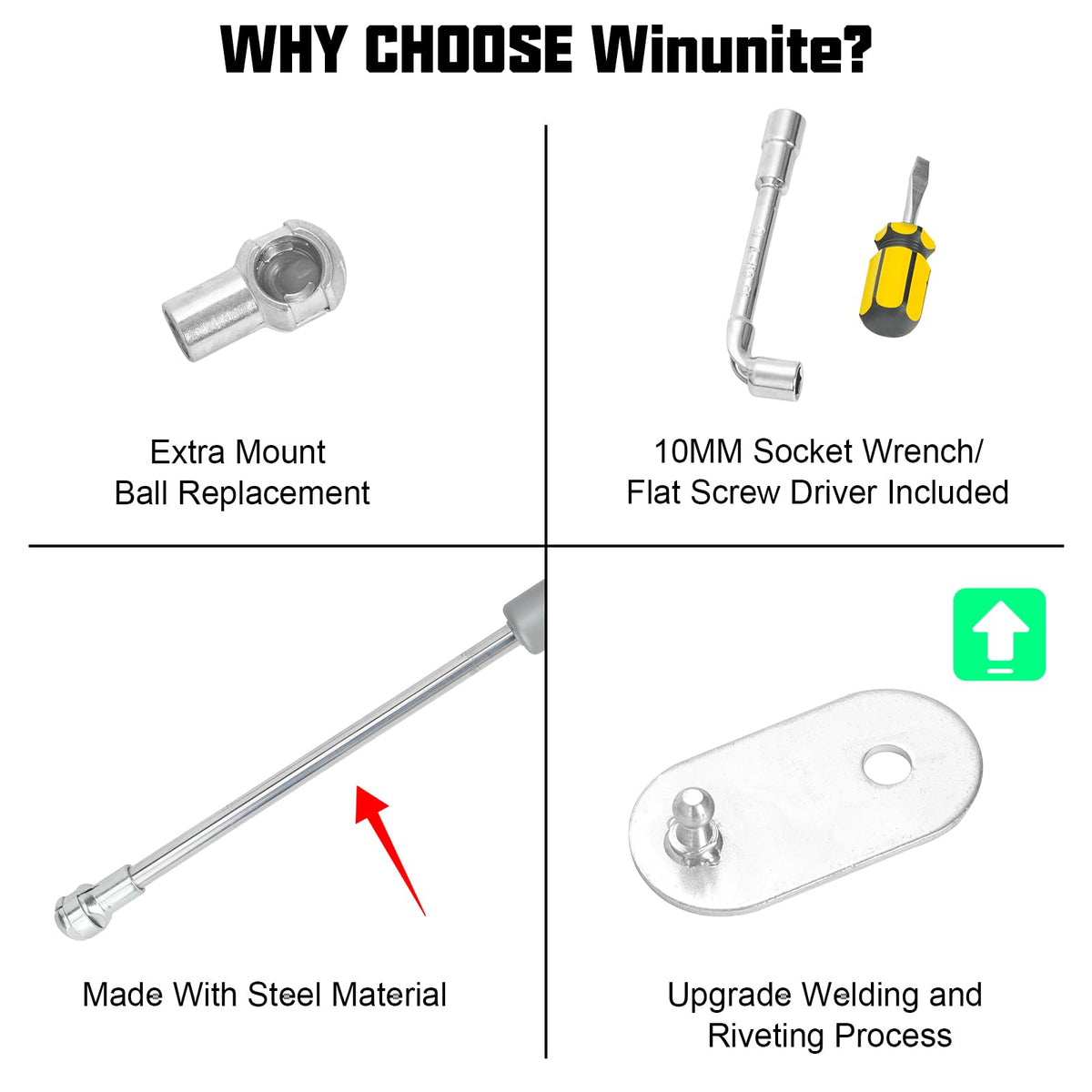 ?Made With Upgraded Quality Steel Material?Tailgate Assist Was Made Of High-Quality Steel Material. We Use Both Riveting And Welding In The Manufacturing Process Of Our Bracket Accessories To Make The Connections Tighter And No Worry About Breakage. Compatible With 2015/2016/2017/2018/2019/2020/2021/2022/2023/2024 F150 Models. Note: 2021/2022/2023/2023/2024 Models Need To Remove One Of Tie Down Hooks To Install. Not Compatible With 2024 Pro Access Tailgate.?All Install Tools Provided In Protective Packaging. Complete Tailgate Assist Kit Helps You To Install It Much More Quicker&Amp;Easier ? Extra Mount Ball Replacement Included. 10Mm Socket Wrench/Flat Screw Driver Included. All Necessory Tools Are Included In The Package,You Can Install Directly Step By Step With The Provided Install Tools.?Safety Control The Drop Rate&Amp;Quiet Soft Open. Easy Down&Amp;Easy Lift?Protect Your Families From Tailgate Slamming Down. Winunite Tailgate Assist Will Safely Control The Drop Rate Of Tailgate And Allows It To Glide Slowly Open. No More Loud Noise Of The Tailgate Slamming Down. No Need To Take Extra Force To Lift It.?Bolt-On Installation. Easy Installation. No Drilling Is Required. Hold Up Over Time? No Drilling Is Required As It Mounts To The Driver 'S Side. Easy To Install With Easy-To-Follow Instructions. Install With Your Existing Bolts. High Quality Steel Material And Perfectly Fitment Design Make The Shock Could Hold Up Over Time.?We Stand Behind Our Products?If You Have Any Question While Using The Product, Contact Our Customer Service Team Please.