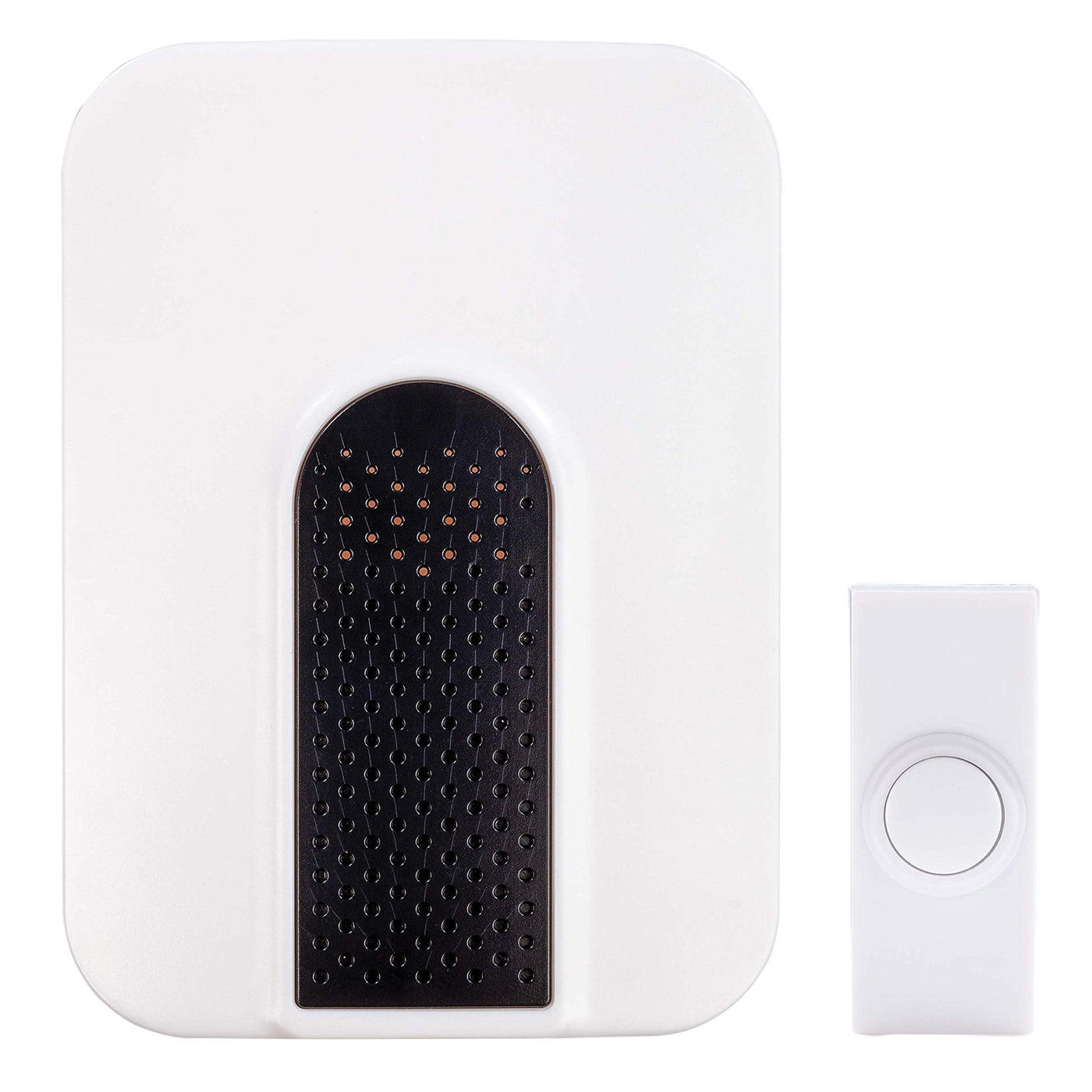 The heath Zenith wireless plug-in doorbell kit included 1 chime and 1 wireless push button. The chime features 3 selectable tunes for the front entrance and a ding for your back entrance.