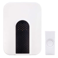 Q: What is the material of the doorbell kit?A: The Wireless Basic White Plug-In Doorbell Kit is made from durable plastic, ensuring that it is both lightweight and long-lasting.