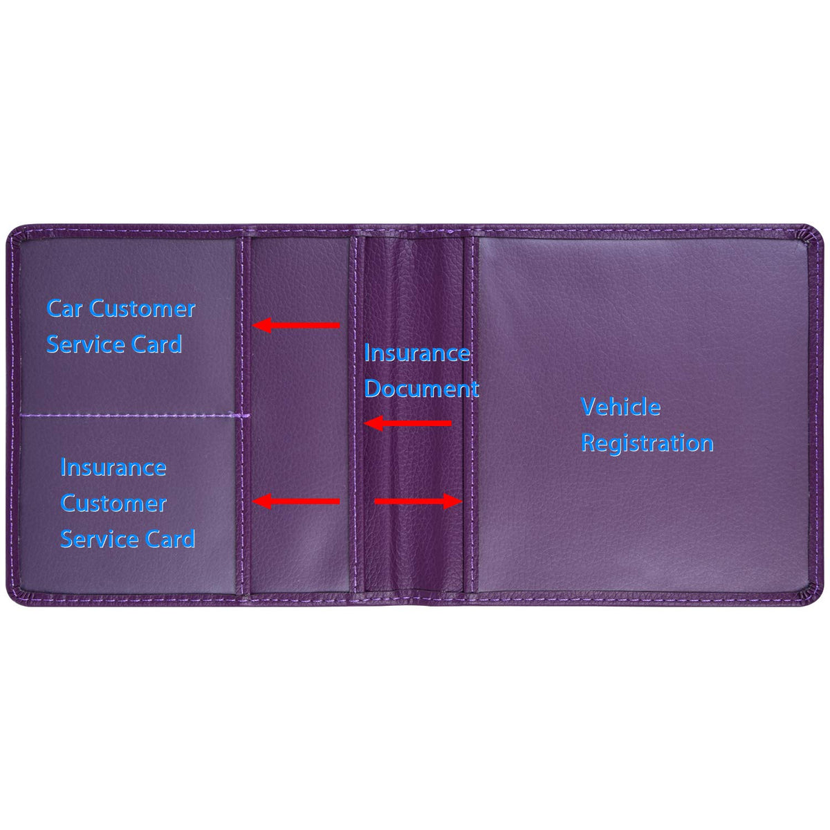 DescriptionWisdompro car document holder is specially designed with 5 different size clear pockets - 2 on the right for storing insurance and registration papers, and 3 on the left for various cards like gas cards, membership cards, business cards, emergency information and etc. Folio compact design with clear classification makes your key items accessible at a glance without digging the scattered glove compartment!All the PVC opening edges are trimmed with PU leather for comfort usage while the sewing process on the premium PU leather make this folder more durable.Dimensions:Folded - 9.5'' x 5.1''(24cm x 13cm)Open - 9.5'' x 10.2''(24cm x 26cm)Wisdompro Retail Package includes:1 x Car Registration HolderWisdompro Customer Satisfaction Warranty:If you encounter issues with any Wisdompro product, please do not hesitate to contact us, we will be happy to help you solve it.