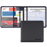 DescriptionWisdompro car document holder is specially designed with 5 different size clear pockets - 2 on the right for storing insurance and registration papers, and 3 on the left for various cards like gas cards, membership cards, business cards, emergency information and etc. Folio compact design with clear classification makes your key items accessible at a glance without digging the scattered glove compartment!All the PVC opening edges are trimmed with PU leather for comfort usage while the sewing process on the premium PU leather make this folder more durable.Dimensions:Folded - 9.5'' x 5.1''(24cm x 13cm)Open - 9.5'' x 10.2''(24cm x 26cm)Wisdompro Retail Package includes:1 x Car Registration HolderWisdompro Customer Satisfaction Warranty:If you encounter issues with any Wisdompro product, please do not hesitate to contact us, we will be happy to help you solve it.