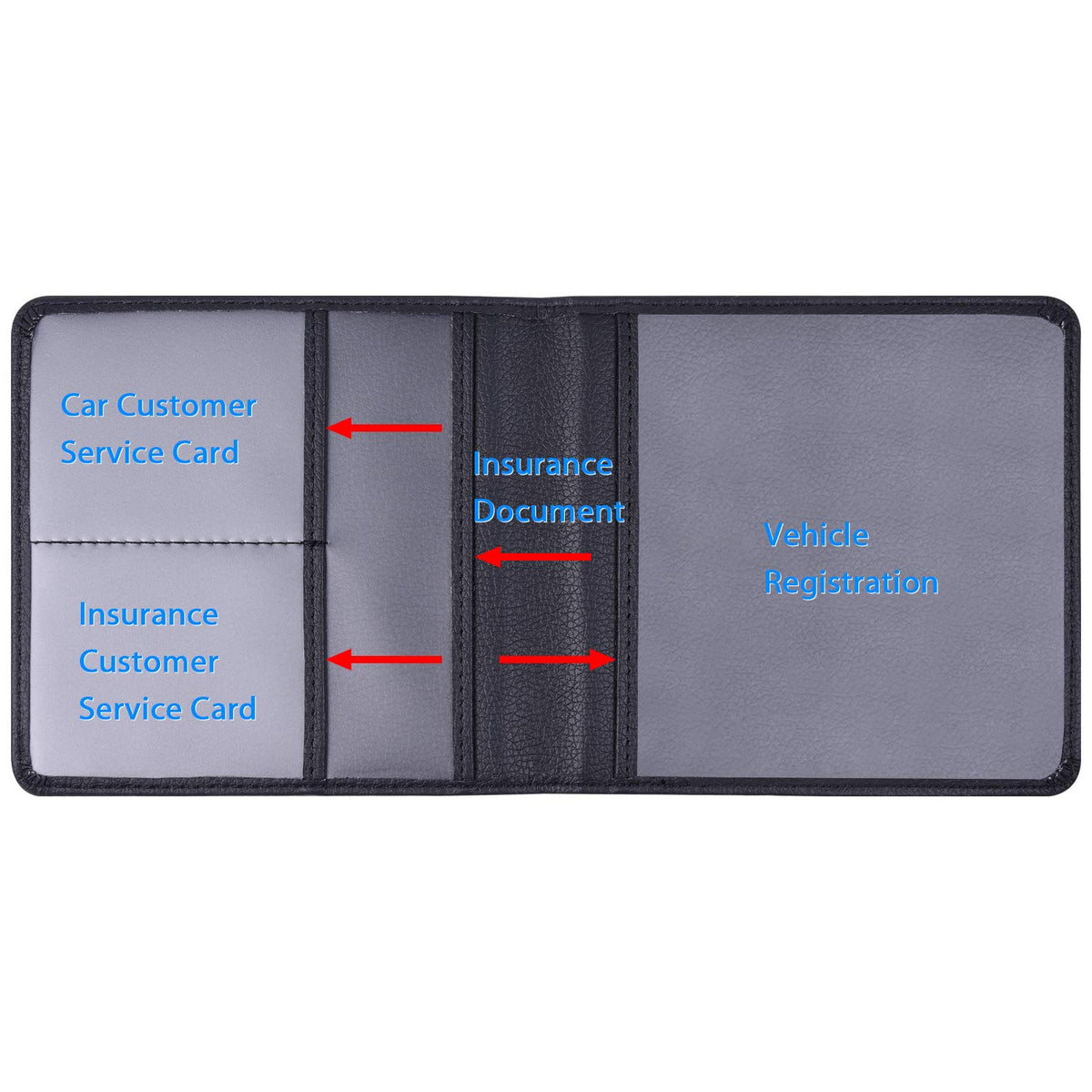 Wisdompro Registration And Insurance Card Holder - Premium Pu Leather Vehicle Glove Box Organizer Car Wallet For Document, Licen